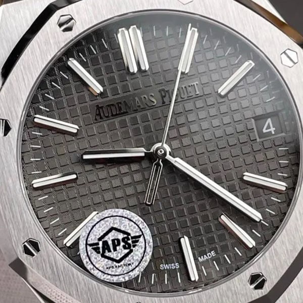 18Kホワイトゴールドのアプライドアワーマーカーとロイヤルオーク針が採用されています。