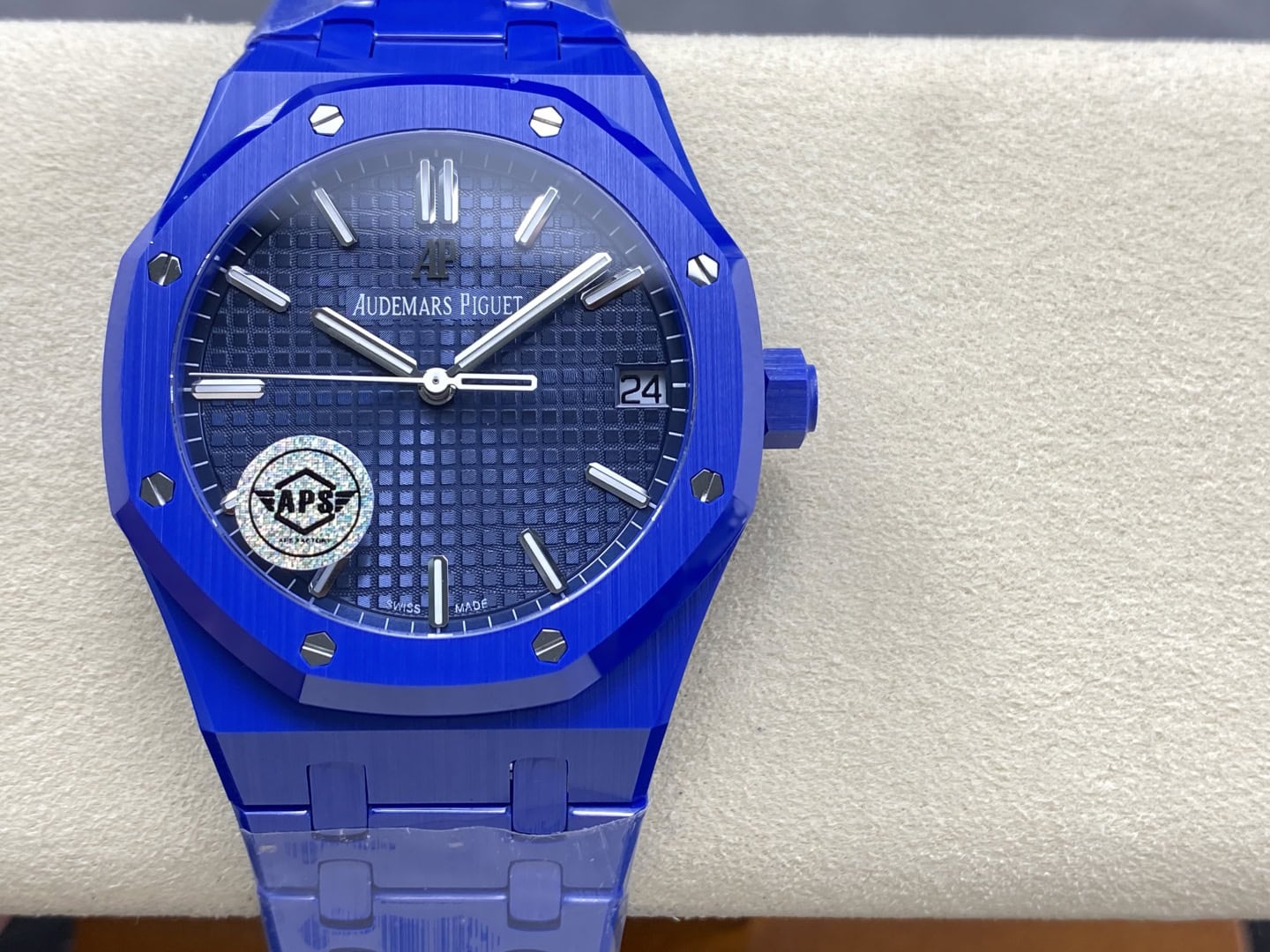 ワンピース構造:APS ケースとブレスレットはシームレスに接続され、ロイヤル オークの象徴的な八角形のベゼルと「タペストリー」ギョーシェ文字盤を継承しています。