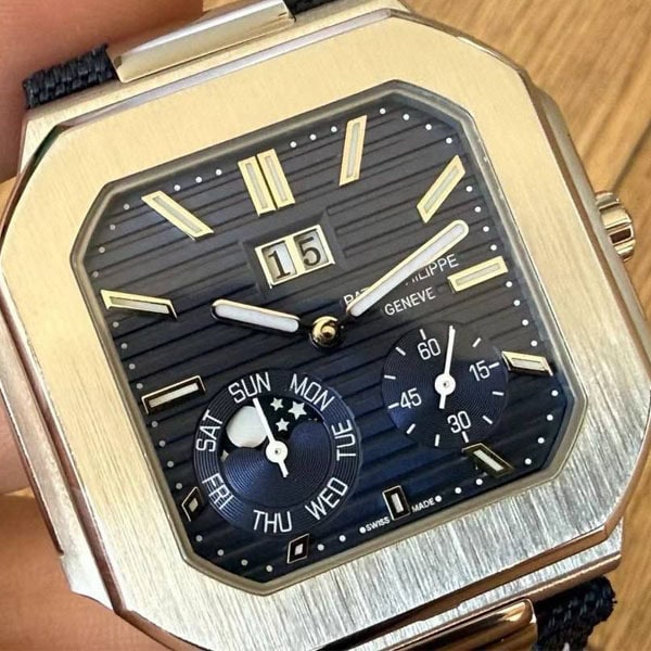 微細な同心円模様の曜日・ムーンフェイズ・サブダイヤル