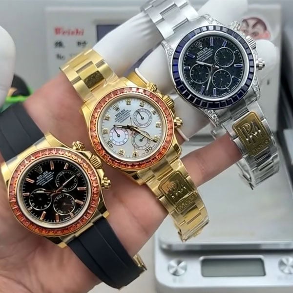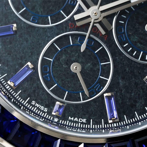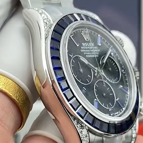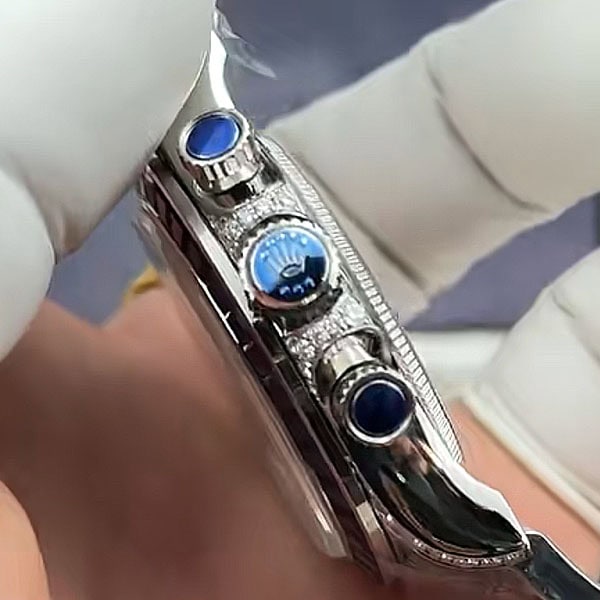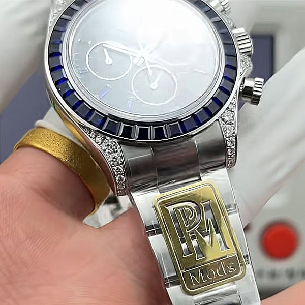 ベゼル:固定ベゼルはモアサナイトダイヤモンドとサファイアで飾られ、本物のデザインを反映しています。