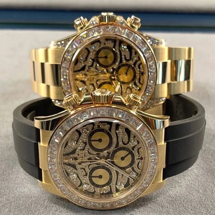 文字盤:ダイヤモンドがちりばめられています。