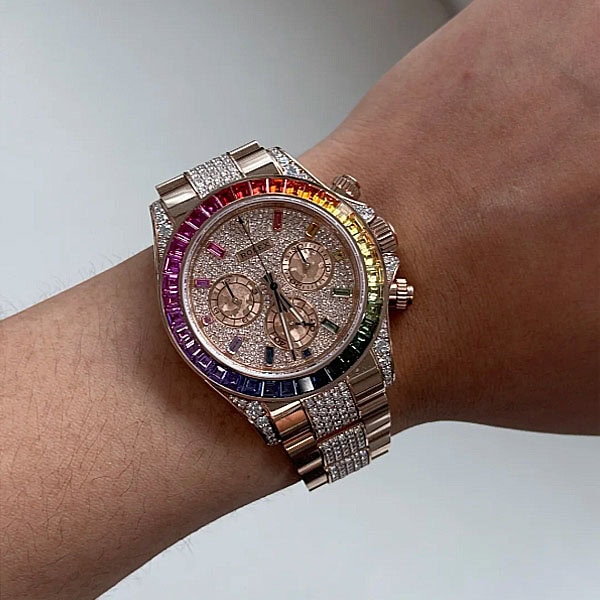 18k砲金のデイトナ レインボー116595RBOWコピーはオリジナルモデルを完全に分解して作製致しました。