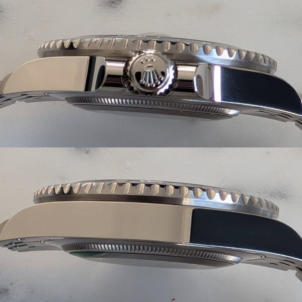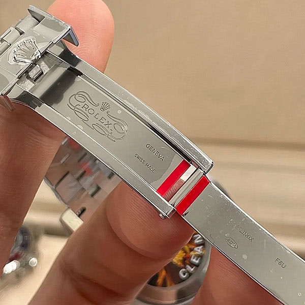6時のところにはレザー刻印によるロレックス王冠ロゴがあります。