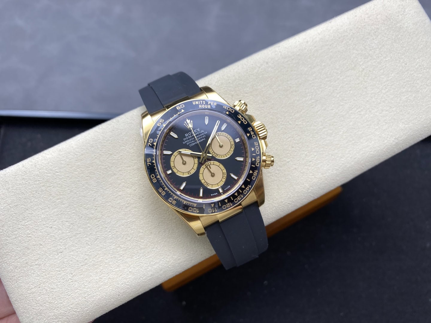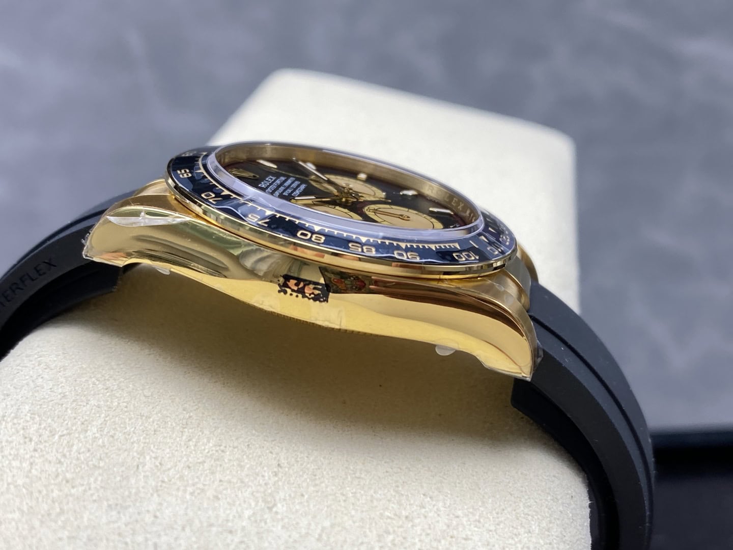 高いコストを厭わずに、ベゼル、風防ガラス、内部カバー、ダイヤル、針、バックルなどの部品を本物と見分けがつかないレベルで製造しています。