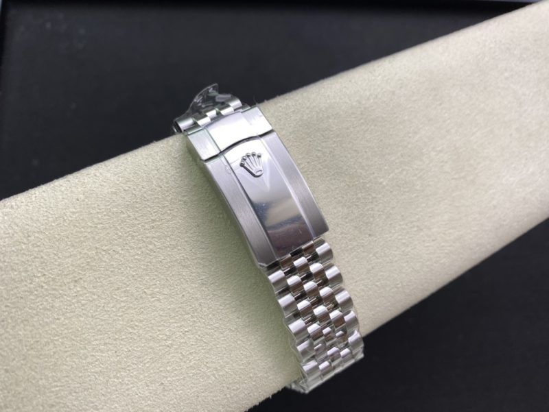 ベルト:オイスター デザインとフラット 3 ピース リンクのブレスレットはソリッド904Lステンレススチールで作り出されており、DLCスクラッチプロティングコーティングを施されています。しっかりとしたネジ山により、楽にベルト調整を実現し、5ミリをコンフォートエクステンションリンク(イージリンクとも言う)を備えた折りたたみ式オイスターロック安全クラスプも備えています。