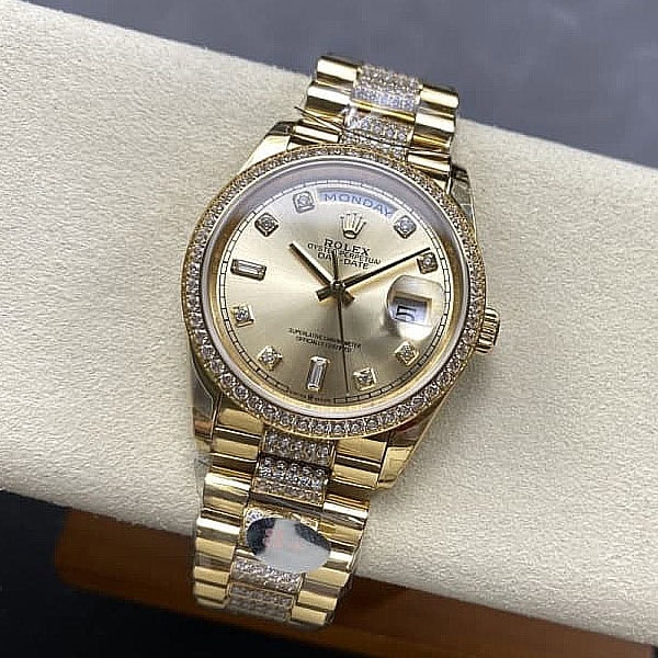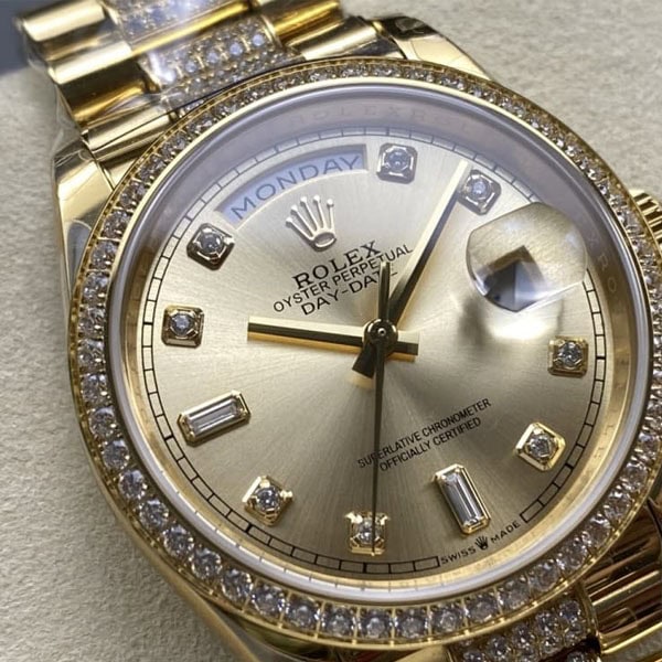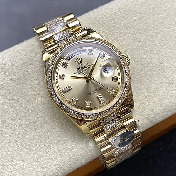 文字盤:人工ダイヤがすべて埋め込み手作業入り!レーザーで精密に作られたテキスト、印刷、彫刻が施された文字盤は、本物のロレックスのものと見分けがつきません。