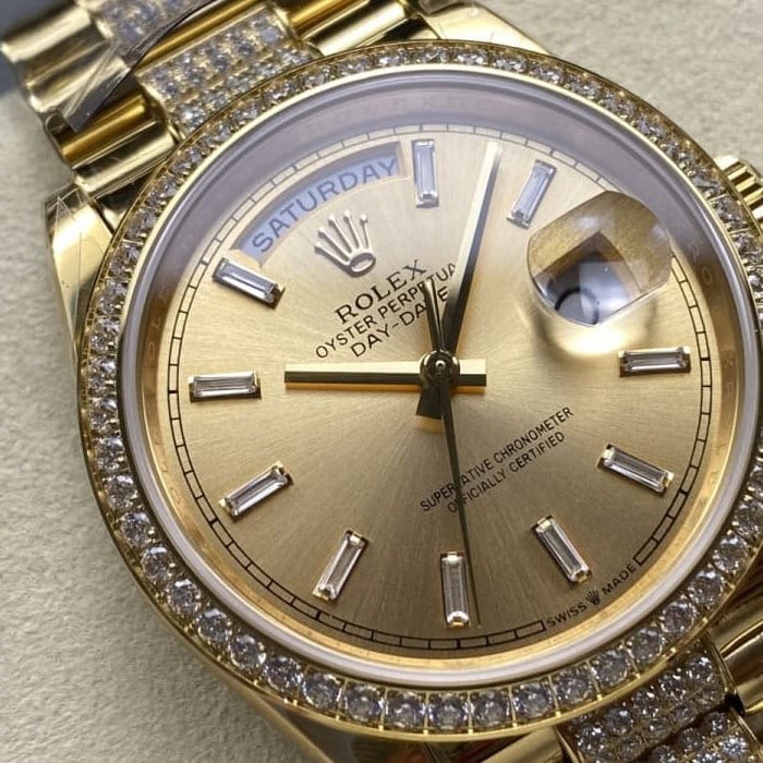 文字盤:人工ダイヤがすべて埋め込み手作業入り!レーザーで精密に作られたテキスト、印刷、彫刻が施された文字盤は、本物のロレックスのものと見分けがつきません。