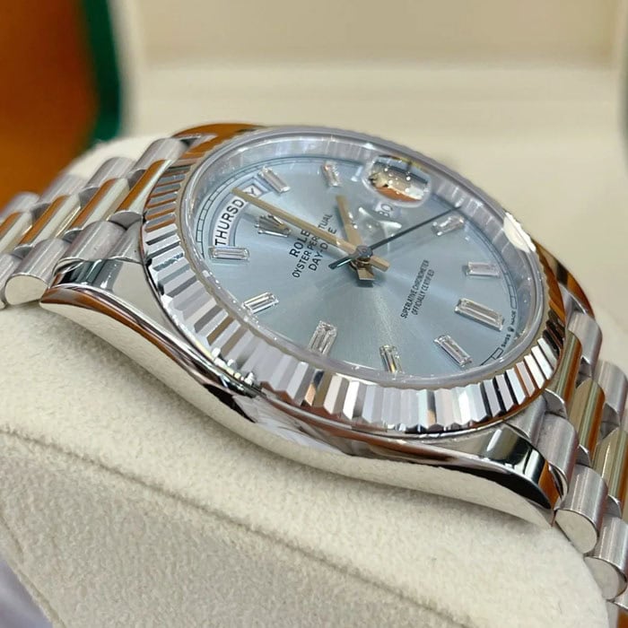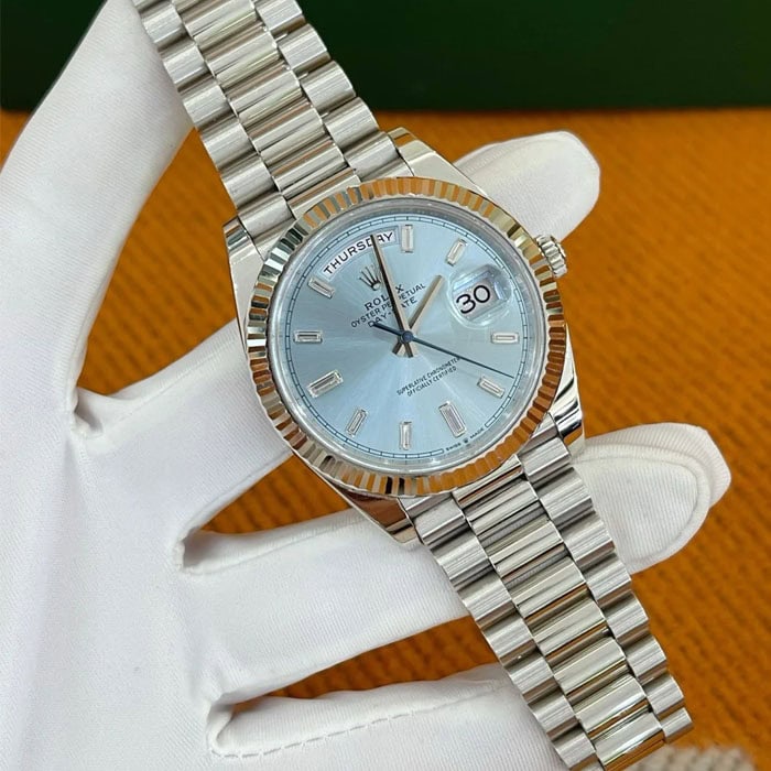 ブレス:半円形の3列リンクのプレジデントブレスレットは18Kホワイトゴールドコーティングされた904Lステンレススチールで作られており、
