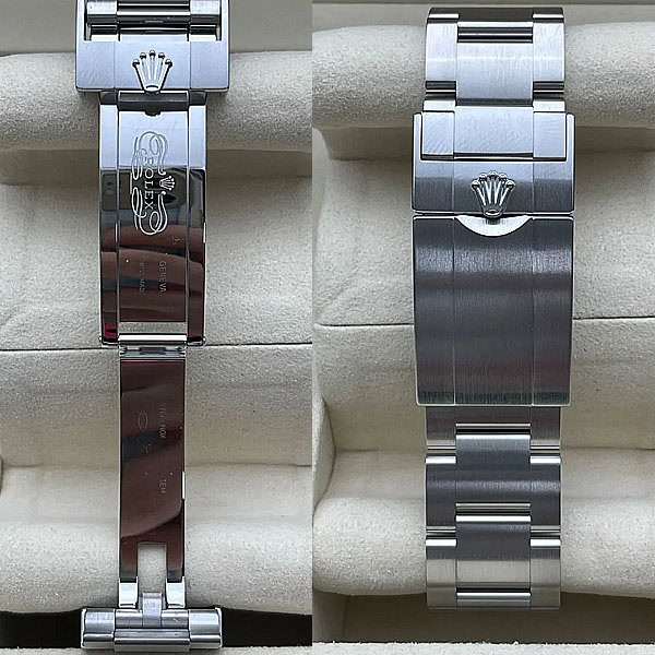 ダイアル6時位置の文字が「SWISS 王冠 MADE」となり、ラグの形状が細くブレスレットの幅が1mmほど大きくなっていますが、