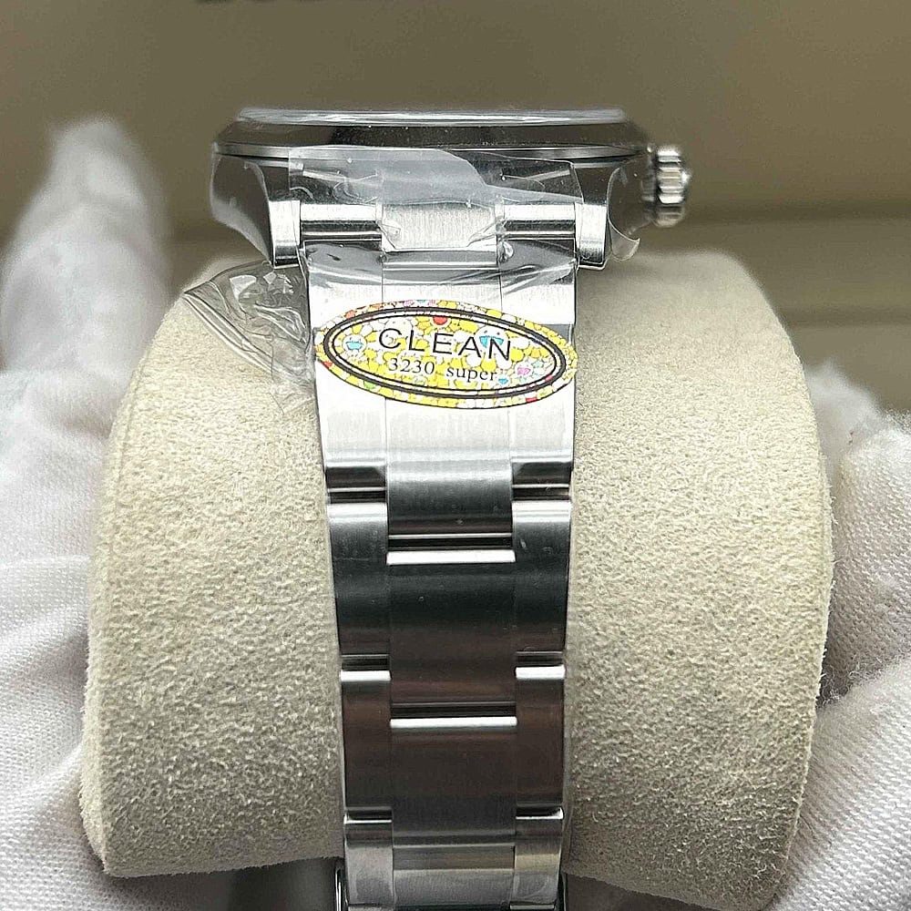 ムーブメント:常磁性青色合金パラクロム ヘアスプリングと高性能パラフレックス ショックアブソーバーを備えたクローン ロレックス 3230 スイス製ムーブメントが搭載されています。正しいシリアル番号と内側と外側の同一のマーキングが含まれており、オリジナルと見分けがつかないです。ムーブメントすべての部品は正規品と交換可能です。パーペチュアル ローターにより、自動機械式双方向自動巻きを実現しています。スムーズなスイープ秒針は 28,800 VPH (4Hz) で動作し、精度は (-4/+6 秒/日) 以内で、COSC 認証制限内に十分に収まり、パワーリザーブは約70時間に達します。