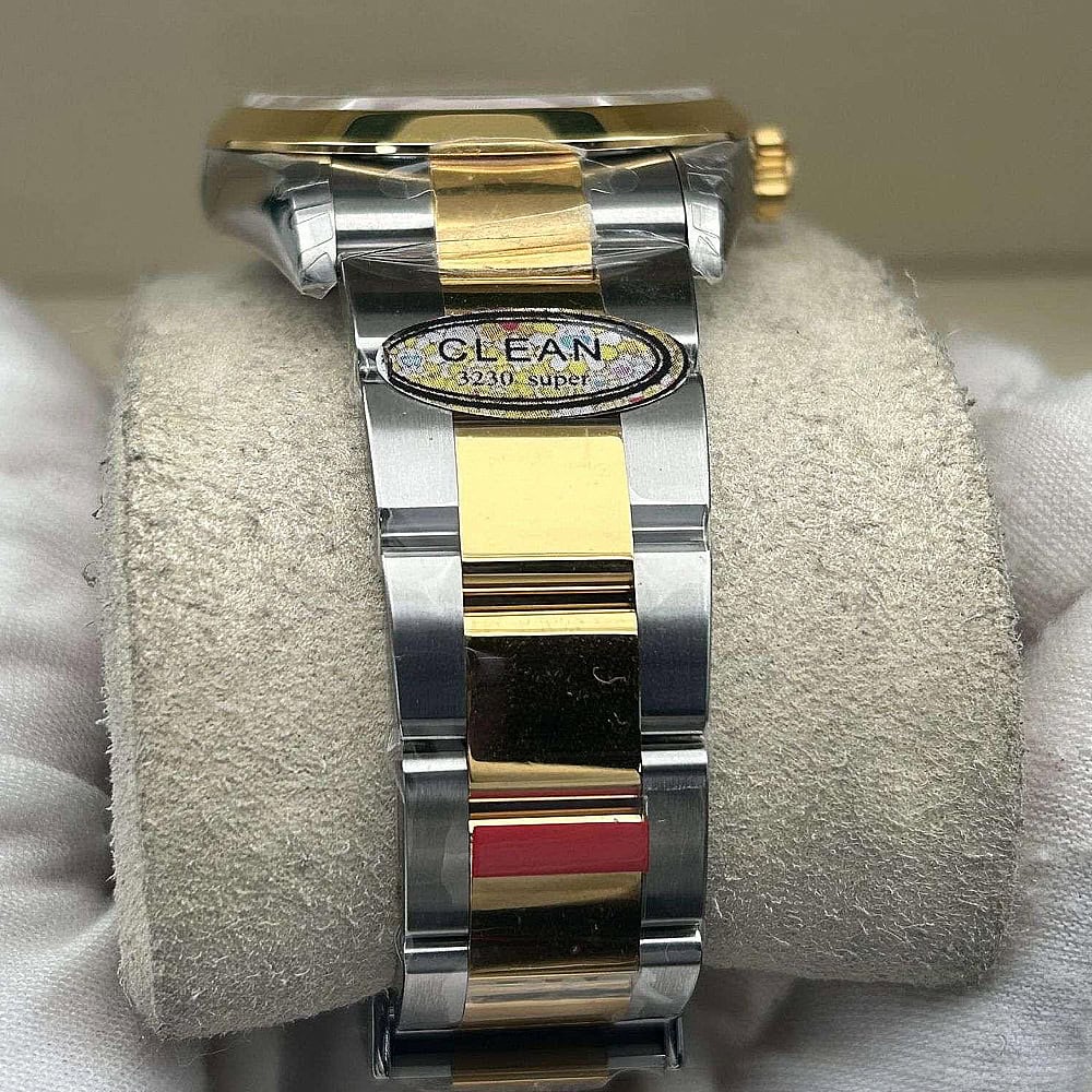 ムーブメント:常磁性青色合金パラクロム ヘアスプリングと高性能パラフレックス ショックアブソーバーを備えたクローン ロレックス 3230 スイス製ムーブメントが搭載されています。正しいシリアル番号と内側と外側の同一のマーキングが含まれており、オリジナルと見分けがつかないです。ムーブメントすべての部品は正規品と交換可能です。パーペチュアル ローターにより、自動機械式双方向自動巻きを実現しています。スムーズなスイープ秒針は 28,800 VPH (4Hz) で動作し、精度は (-4/+6 秒/日) 以内で、COSC 認証制限内に十分に収まり、パワーリザーブは約70時間に達します。