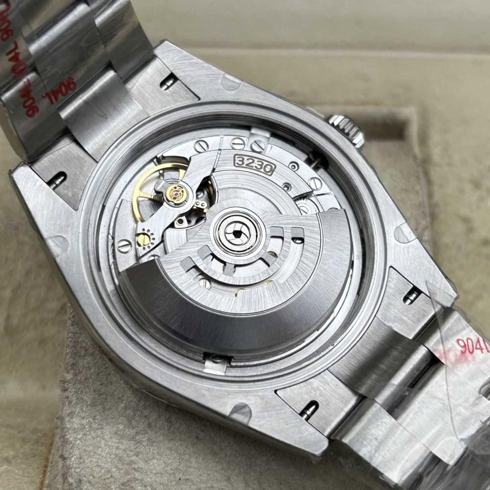 ムーブメント:常磁性青色合金パラクロム ヘアスプリングと高性能パラフレックス ショックアブソーバーを備えたクローン ロレックス 3230 スイス製ムーブメントが搭載されています。正しいシリアル番号と内側と外側の同一のマーキングが含まれており、オリジナルと見分けがつかないです。ムーブメントすべての部品は正規品と交換可能です。パーペチュアル ローターにより、自動機械式双方向自動巻きを実現しています。スムーズなスイープ秒針は 28,800 VPH (4Hz) で動作し、精度は (-4/+6 秒/日) 以内で、COSC 認証制限内に十分に収まり、パワーリザーブは約70時間に達します。