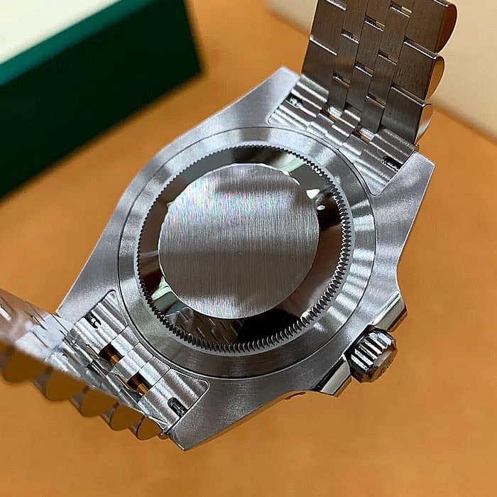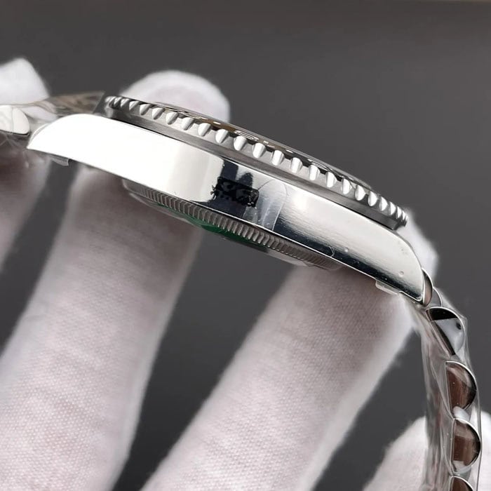 レザーによる高精度のテキスト、フォント、刻印、正確なデイトフォントとサイズに至るまで、完璧にロレックス正規品を再現しています。特徴的なグリーン GMT の矢印の付いた針は24時間ごとに1回を回転します。