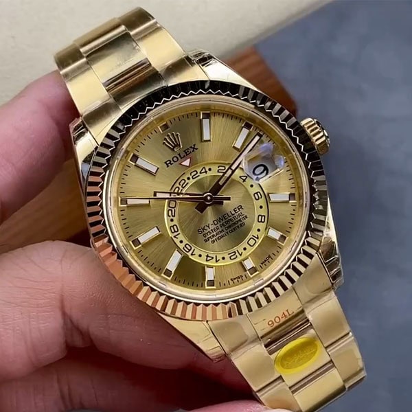ケース:42mmのオイスターケースはロレックスのオイスタースチールにマッチし、ソリッドな904Lステンレススチールのモノブロック構造の上に18kゴールドコーティングを施された
