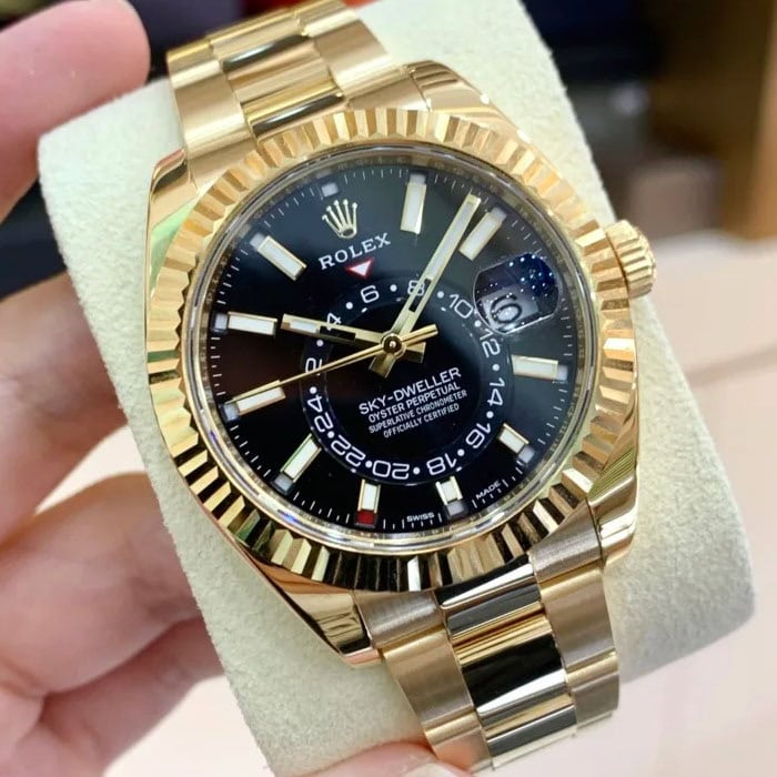 ケース:42mmのオイスターケースはロレックスのオイスタースチールにマッチし、ソリッドな904Lステンレススチールのモノブロック構造の上に18kゴールドコーティングを施された