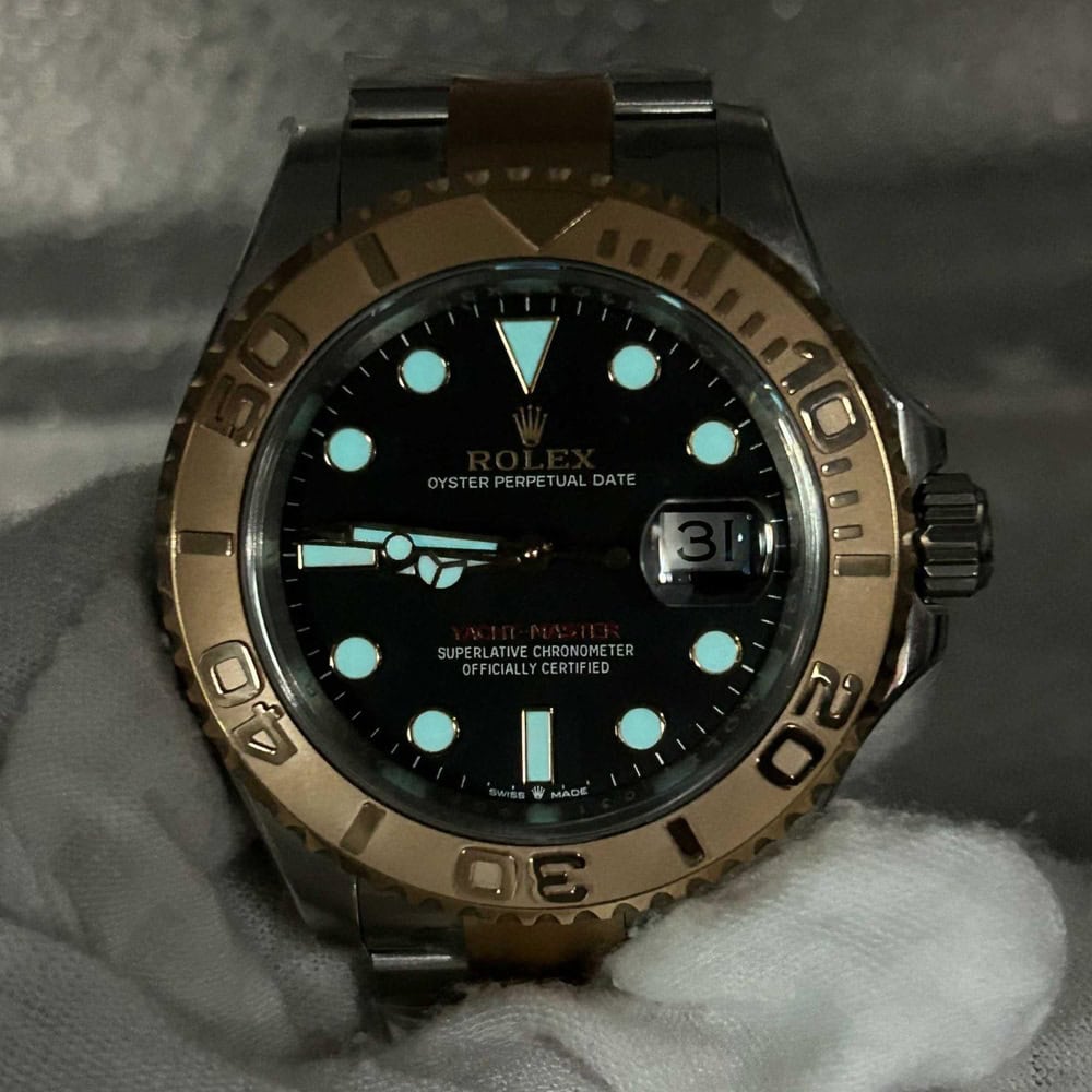 ロレックス 偽物ヨットマスター126621 40mm コンビローズゴールド ブラックダイアル クローンCal.3235ムーブメント