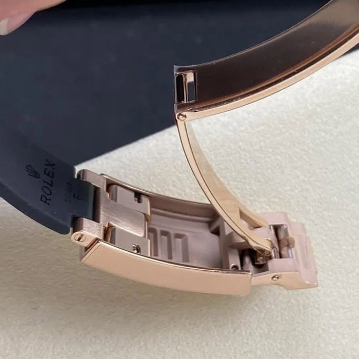 折りたたみ式安全クラスプは18K IPG ローズゴールド特殊イオンコーティング加工に施された904Lステンレススチールで作り出されており、