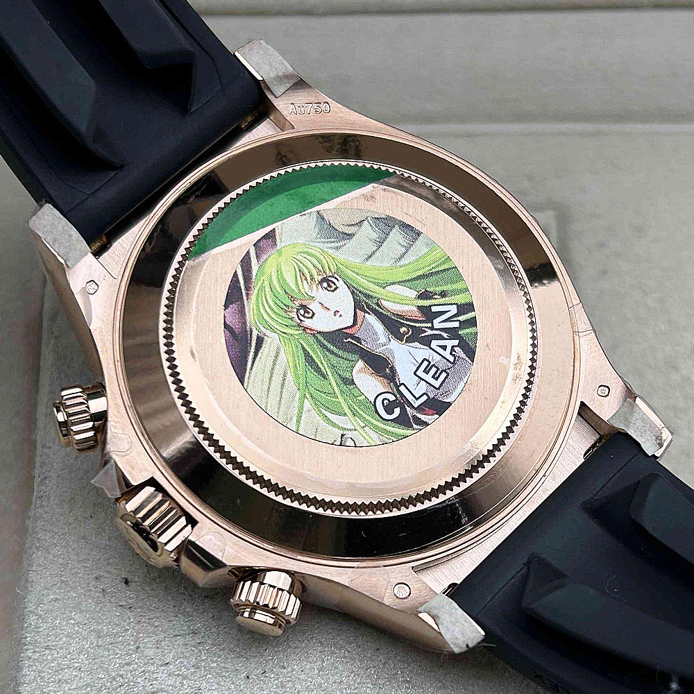 ムーブメント:この傑作な時計はクリーンファクトリーによるロレックス4130クローンコスモグラフムーブメントを搭載しています。ムーブメントには正しいシリアルナンバーと内側と外側同一なマッキングがあり、ロレックス正規品と見つけならないです。このムーブメントはスイープセコンド針は28,800 VPH (4Hz)でスムーズに作動することを確保しています。精度はCOSC認定範囲(-4+6秒/日)に抑えられており、パワーリザーブはほぼ48時間に誇り、安定性の象徴となっています。