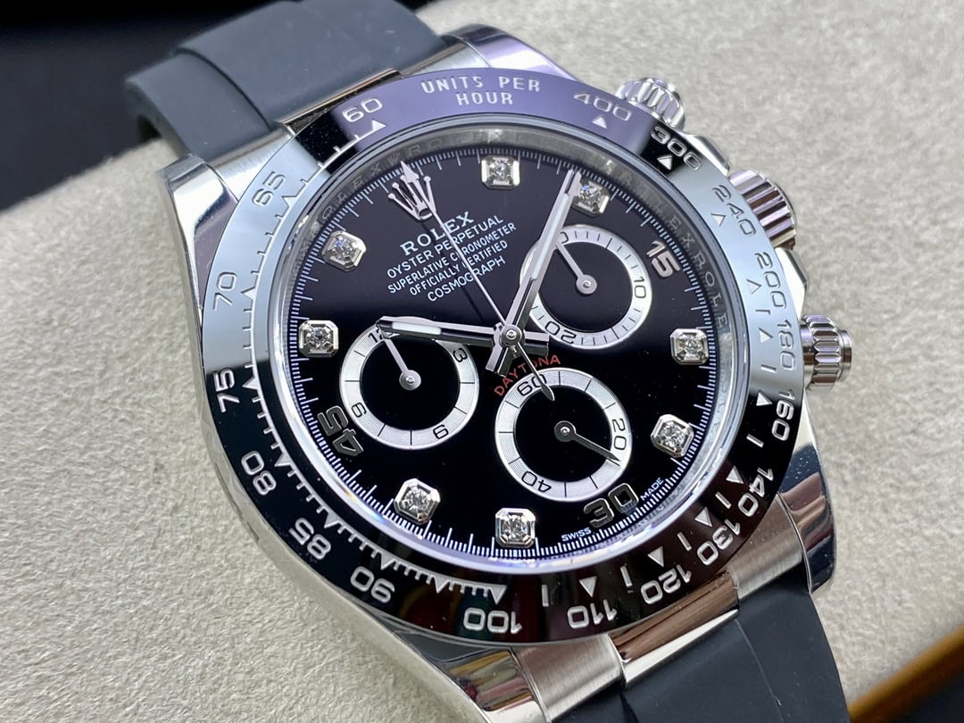 高いコストを厭わずに、ベゼル、風防ガラス、内部カバー、ダイヤル、針、バックルなどの部品を本物と見分けがつかないレベルで製造しています。