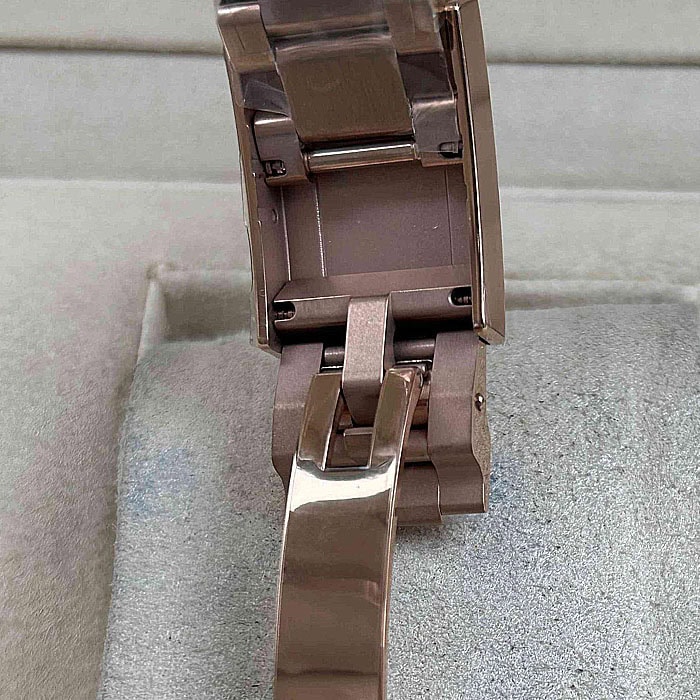 18Kローズゴールドコーティングされた904Lステンレススチールで作り出されており、DLCスクラッチプロティングコーティングも施されています。