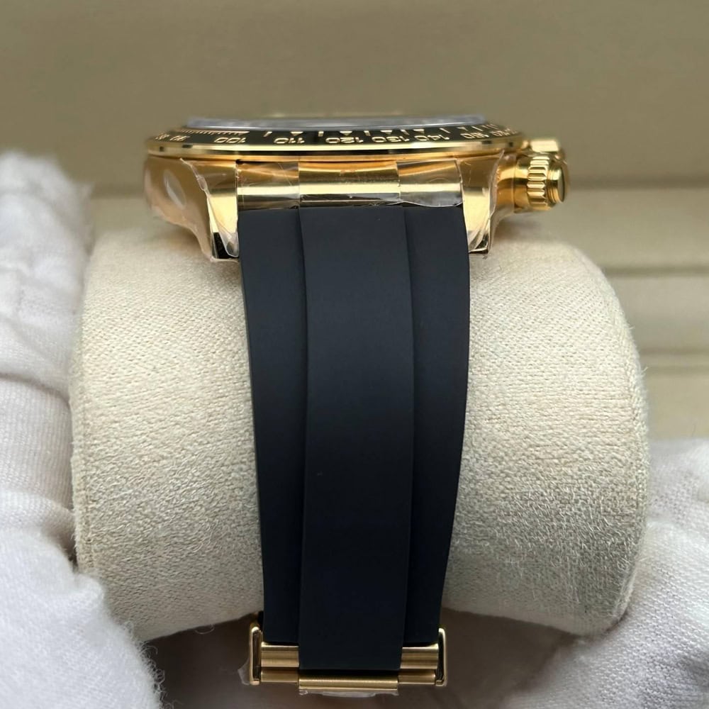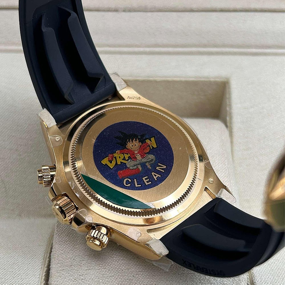 ケース:クリンファクトリーによるこのデイトナは本物18KイエローゴールドPVDコーティング加工された頑丈な904Lステンレススチールによって作りされております。40ミリのケースは完璧に正規品と一致しております。ケースは一体鍛造製法によって作り出されており、滑らかで洗練されたエッジが特徴です。頑丈なねじ込み式リューズはスイス製ラバー・シールと完璧に組み合わされております。RehautにはROLEXROLEXの刻印が刻まれており、あらゆる方面はロレックスデザインを一致しております。