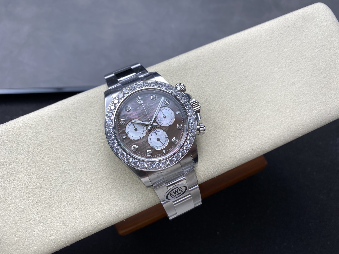 文字盤:ブラックとホワイトのマザーオブパール、ダイヤモンド入り