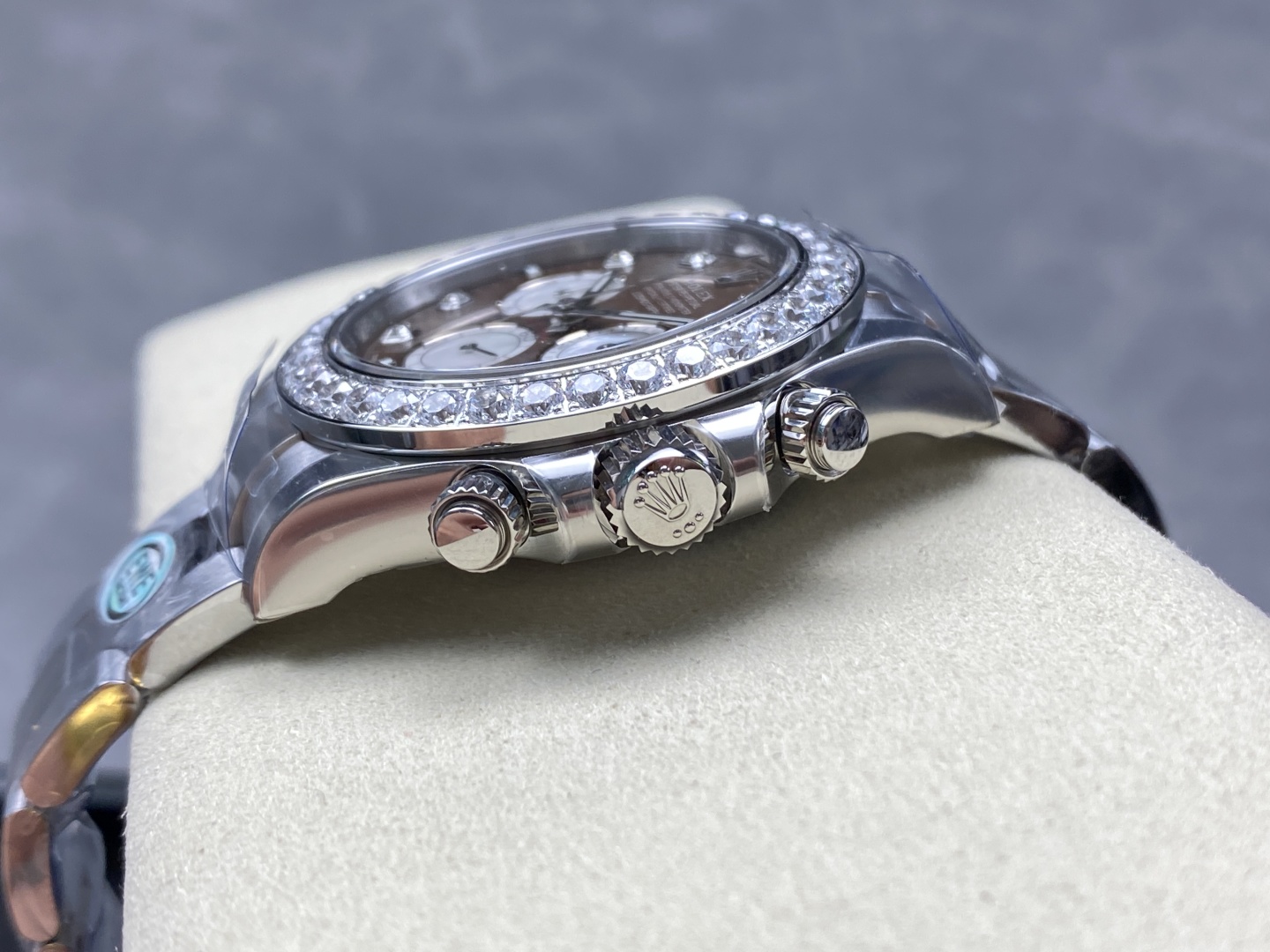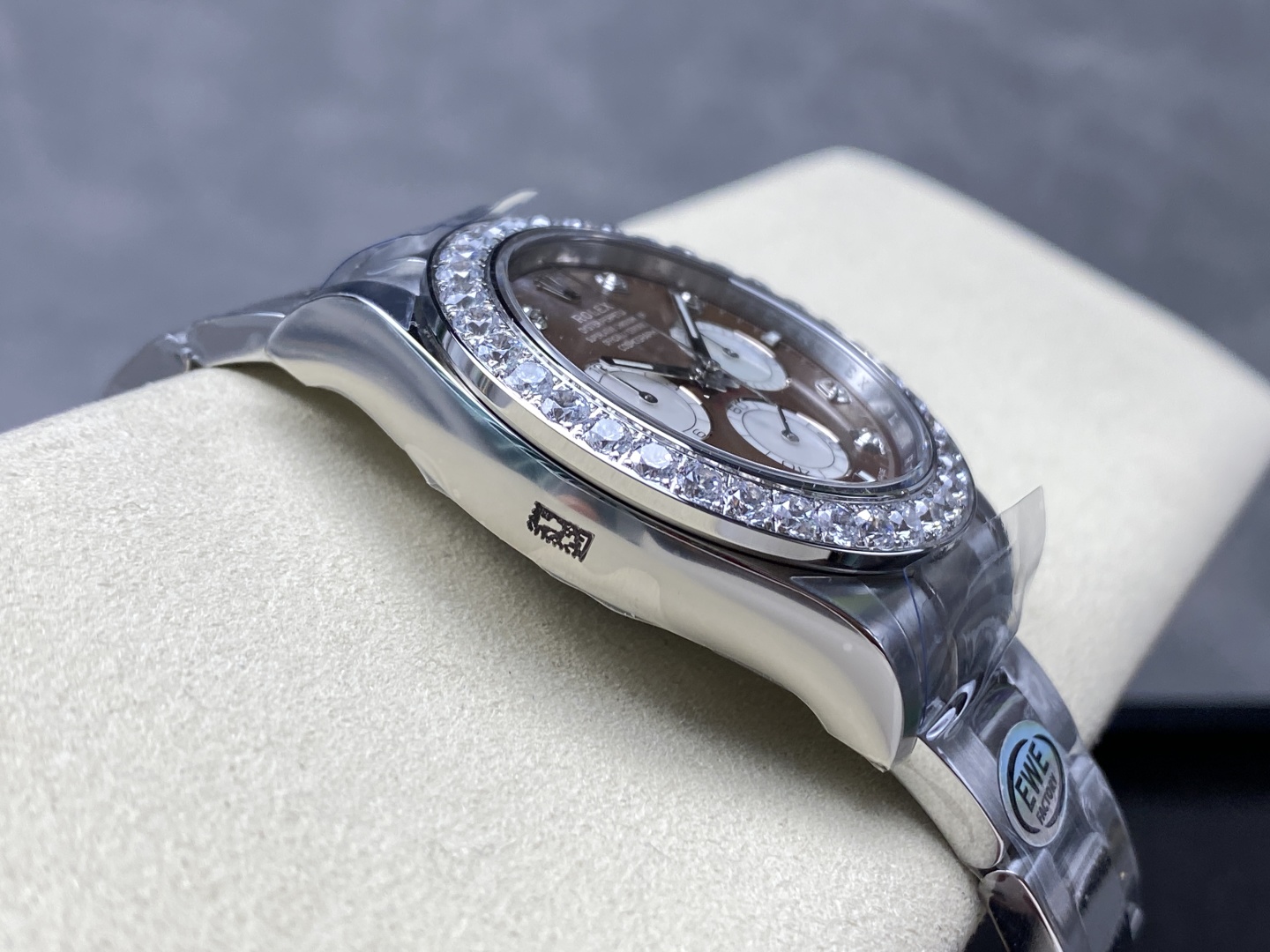 ベゼル:ダイヤモンド入り人工ダイヤがすべて埋め込み手作業入り!