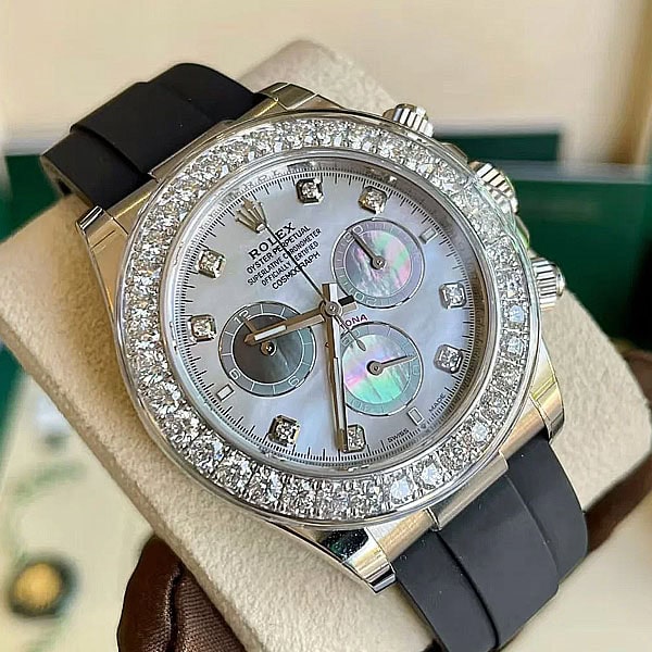 ベゼル:ベゼルはモアサナイトダイヤモンド飾られ、本物のデザインを反映しています。