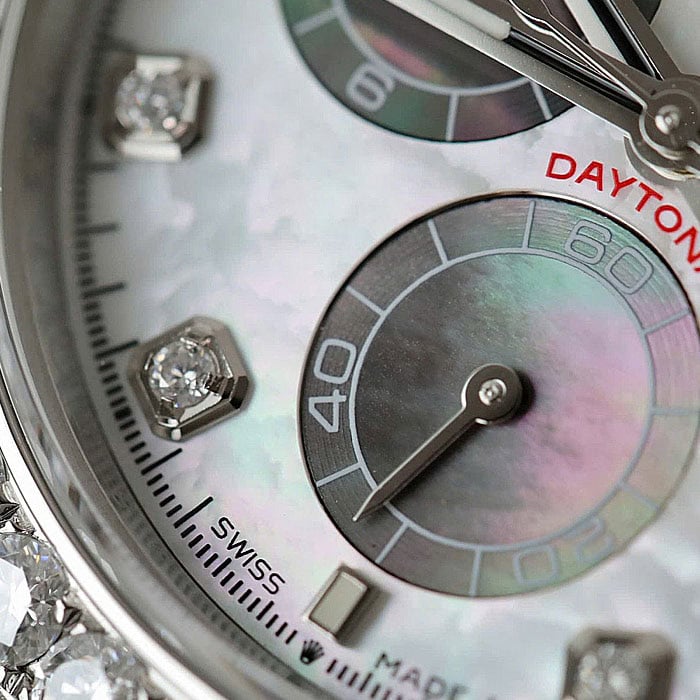 デイトナ126589rbrコピーは、コントラストが際立つダイアルは天然のマザーオブパールで作られ、
