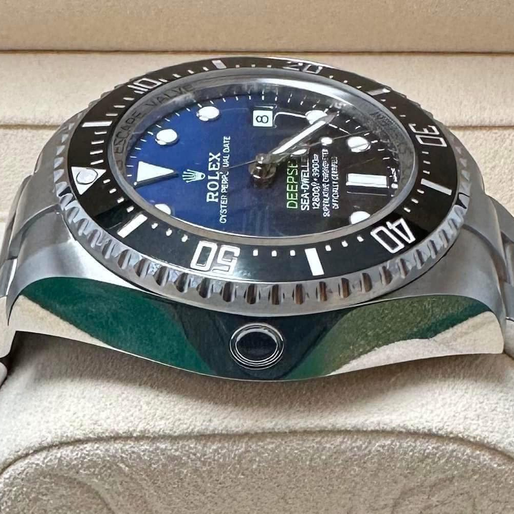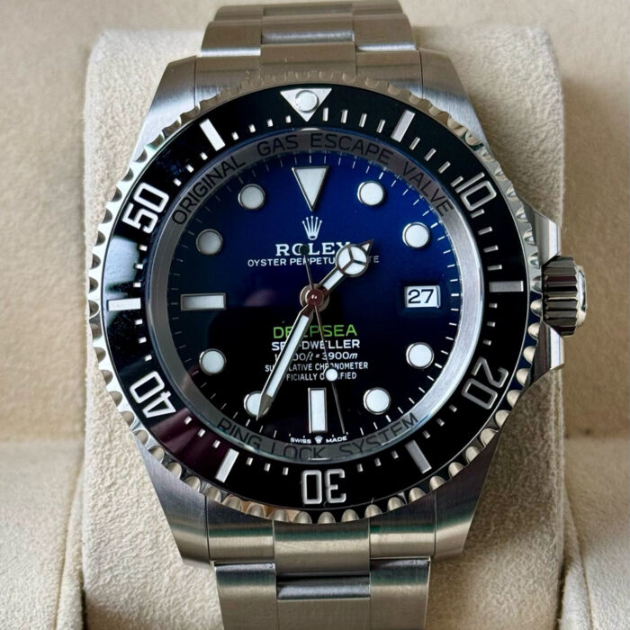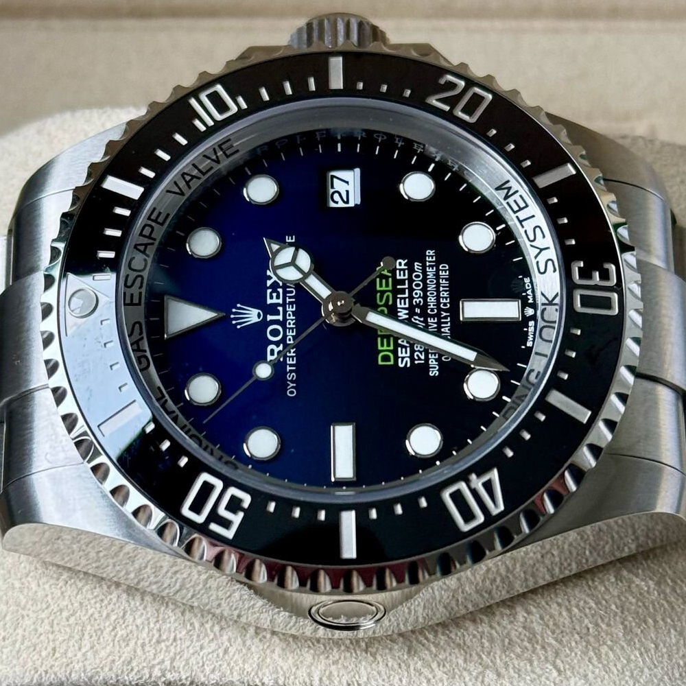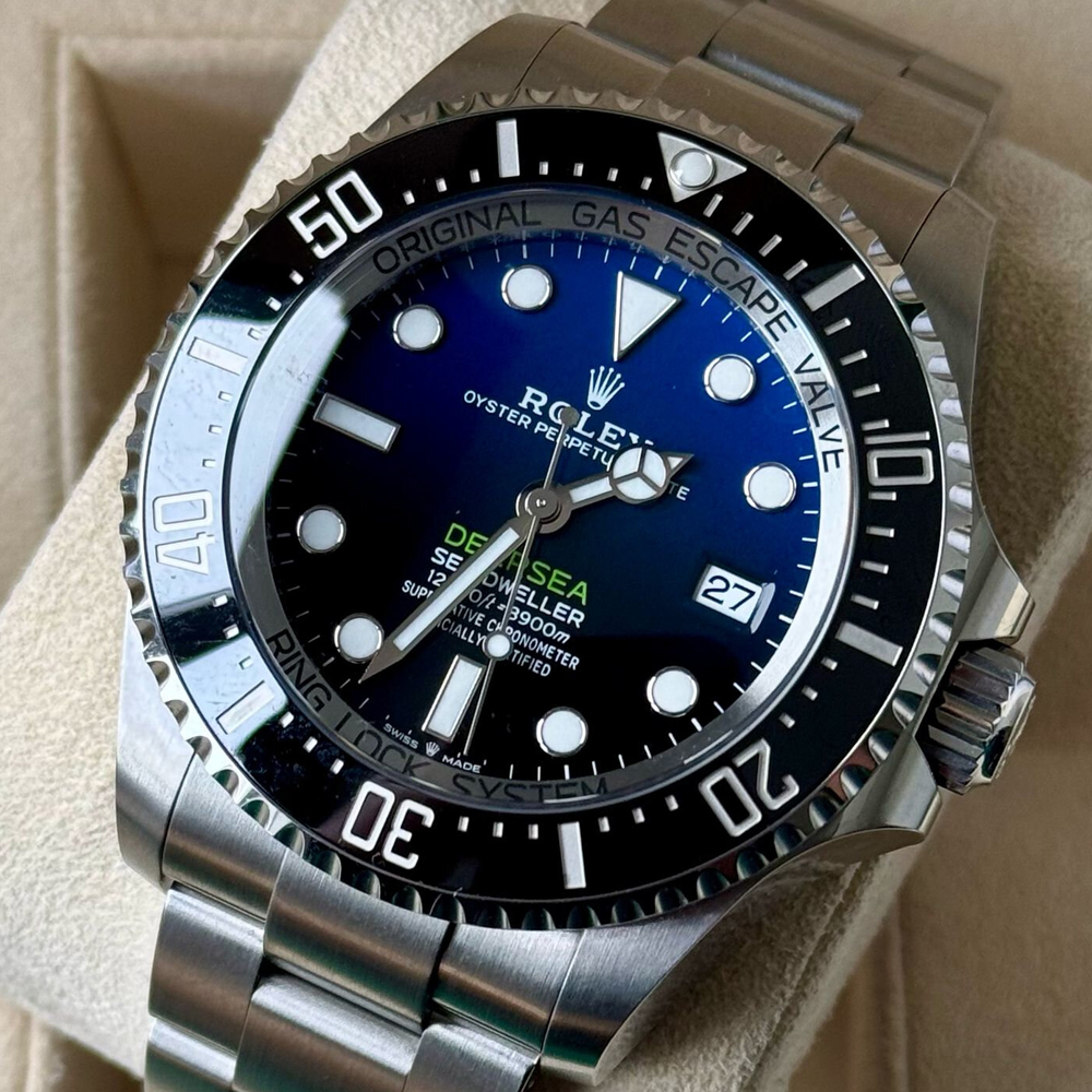 Dブルーの文字盤は、深海の深い青を思わせ、美しさと機能性を兼ね備えた一品です。