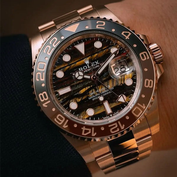 文字盤:タイガーアイアン。ロレックスがこのモデルに初めて採用した変成岩で、