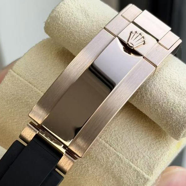 ベルトは天然ラバーベルト刻印質感完璧 ラバーベルトはカーブを描くようにしなり腕にしっかりフィットします。