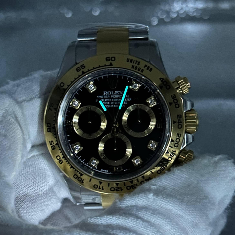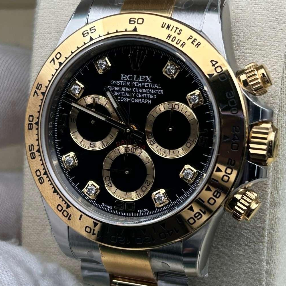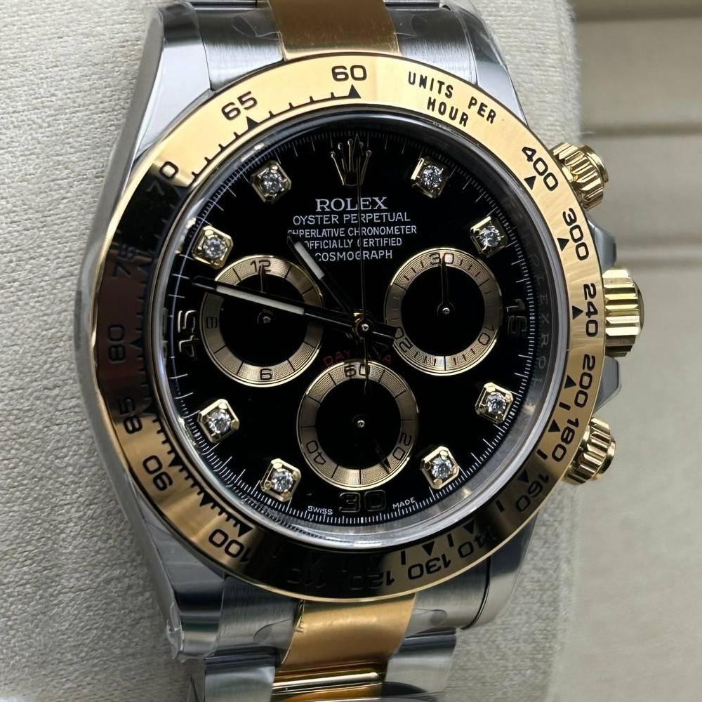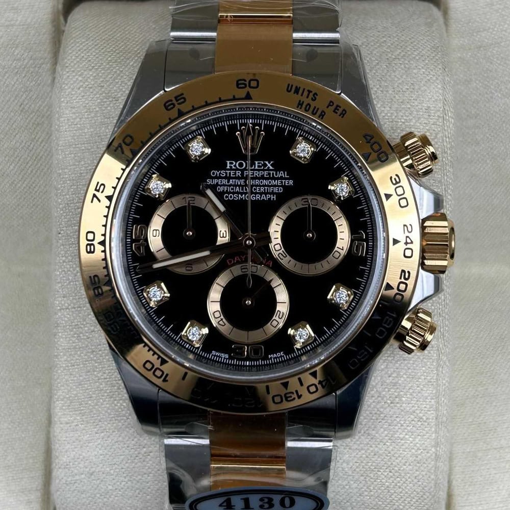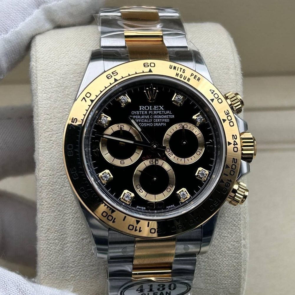 ロレックス デイトナ116503コピー時計, コンビゴールド40mmダイヤモンド入りブラックダイアル クローンCal.4130ムーブメント