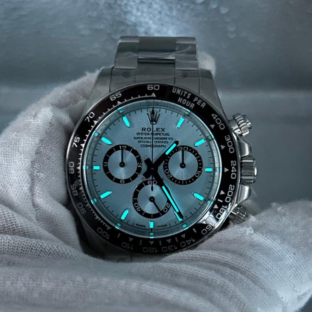ムーブメント:精緻な技術と数え切れないほどの投資を通じて、クリーンファクトリーは正規品とほぼ同じ11.9ミリの厚さを実現し、長期間にわたる堅牢性と耐久性を保証しています。このムーブメントは28,800 VPH (4Hz)で作動しており、精度も(-4+6秒/日)に抑えられており、パワーリザーブはほぼ48時間に達します。クロノグラフ機能について、スモールセル針と、3時に位置する30分カウンター、9時に位置する12時カウンターを備えており、クリーンファクトリーは卓越性への拘りと時計製造におけるイノベーションを証明しています。