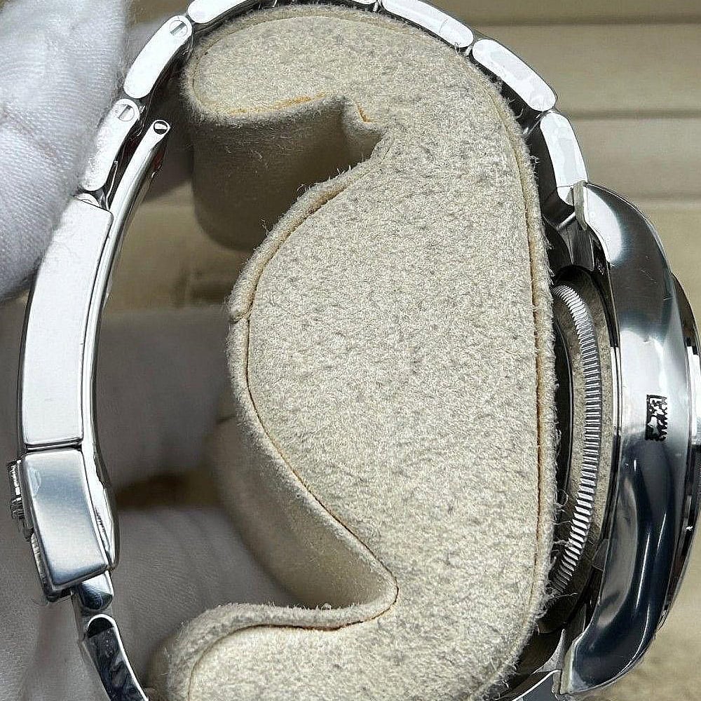 ベルト:象徴的なオイスター デザインを体現したベルトは、18K ホワイト ゴールドで包まれたソリッド 904L ステンレススチール製のフラット 3 ピース リンクにデザイされ手落ち、DLC 傷防止コーティングで保護されています。しっかりとしたネジと、Easylink 5 mm コンフォート エクステンション リンクを備えた折りたたみ式オイスターロック安全クラスプは、クリーンファクトリーは快適さと耐久性に対する取り組みを体現しています。
