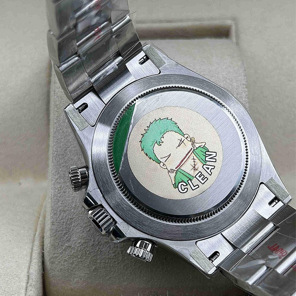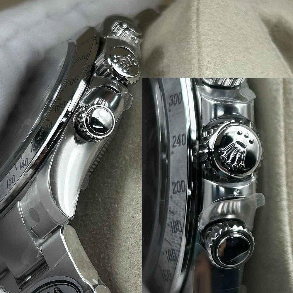 ケース:この精巧なクリーン ファクトリーの時計は本物のロレックス スチールと同じモノブロック 構造で作り出された 40mm のソリッド 904L ステンレススチール ケースを備えています。この時計はスクリュー式ケースバック、プッシュボタン、リューズはすべて合成ラバーで密封されており、最大限の耐久性を実現しています。Rehautリンクに刻印されたROLEXROLEXレーザー刻印を誇らしげに表示し、DLC耐傷コーティングで保護されています。寸法と重量は本物のモデルと正確に一致しており、すべての部品がオリジナルのロレックスと交換可能です。