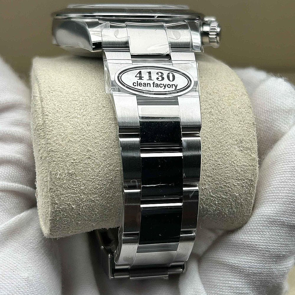 ムーブメント:この優れたモデルはロレックス 4130 クローン クロノグラフ ムーブメントが搭載されています。ムーブメントに刻印された正しいシリアルナンバーと内側と外側の同一の刻印が特徴で、正規品と見分けがつかないです。このムーブメントは、28,800 VPH (4Hz) で滑らかにスイープする秒針の動きを実現し、COSC 認証制限 (-4+6 秒/日) 以内の精度を維持できます。パワーリザーブ約48時間で、安定性の象徴です。