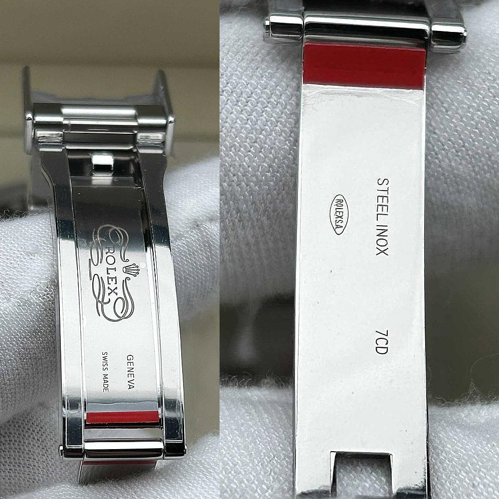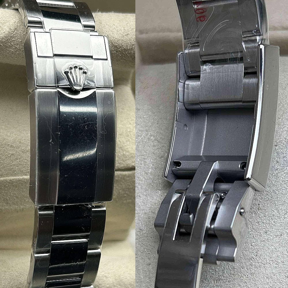 ベルト:ベルトは平たい3列なオイスタータイプにデザインし、快適な付け心地とスタイルをもたらします。クリーンファクトリーは904L高強度ステンレススチールを採用し、DLCスクラッチプロティング コーティングを施され、長持ちできるように作られています。しっかりとしたネジ山が所定の位置に固定され、折りたたみ式オイスターロック安全クラスプはEasylink 5 mm コンフォート エクステンション リンと組み合わせて、素早く長さを調整できます。
