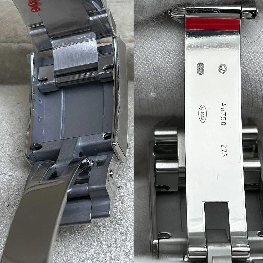 ケース:クリーンファクトリーのケース・エクセレンス:この40ミリモデルは18Kホワイトゴールドコーティングされたソリッド904Lステンレススチールによって作り出されおり、モノブロック構造はロレックス正規品と一致しております。この時計は合成ラバーで密封されたねじ込み式ケースパックとプッシュボタンを備えており、ロレックスデザインの完成性を維持しております。RehautリンクにROLEXROLEXレーザー刻印を刻まれており、DLCスクラッチプロティングコーティングはクリーンファクトリーがディテールへの拘りを証明しております。寸法から重さに至るまで、あらゆるディテールは完璧にロレックス正規品と一致するように還元されており、あらゆる部品は正規品と交換性があります。