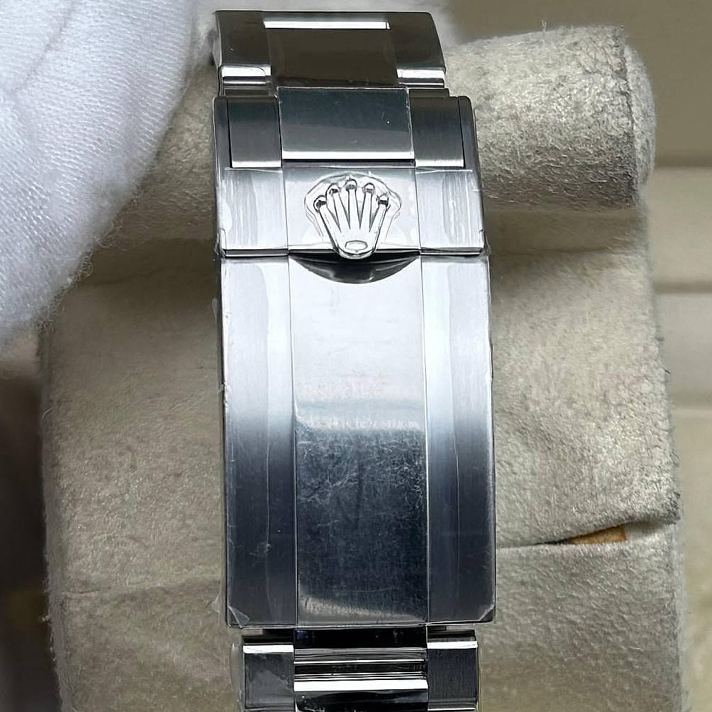 ベルト:3ピースリンクを象徴とするオイスターデザインは快適さとスタイルを提供しています。頑丈な904Lステンレススチールで作り出されており、DLCスクラッチプロティングコーティングを施されており、この時計は長持ちできるように作り出された物です。しっかりしたネジはコマをきちんと固定されており、5ミリコンフォートエクステンションリンク(イージリンクとも言う)を含む折畳式オイスターロック安全スクラップにより素早くベルト調節を実現します。
