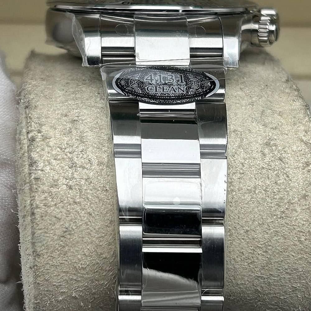 ムーブメント:クリーンファクトリーのエンジニアは4つのロレックス正規品ムーブメントを基づいて、専念に研究して、初の4131クローンムーブメントを作り上げました。精巧な技術と数え切れないほどの投資によって、クリーンファクトリーによる4131ムーブメントの厚さ約11.9MM、ロレックス正規品と一致させており、長期にわたって堅牢性と信頼性を確保しております。注意すべきなのはメインプレートです。ロレックスのバージョン4131ムーブメントのように、象徴的なコート・ド・ジュネーブストライプを見ることができます。このムーブメントは28,800 VPH (4Hz)で作動しており、精度は(-4+6秒/日)に抑えられており、パワーリザーブは約48時間です。センターセコンド針、3時位置の30分積算計、9時位置の12時間積算計を含むクロノグラフ機能は、時計製造における卓越性と革新性に対するクリーンファクトリーのコミットメントを際立たせております。
