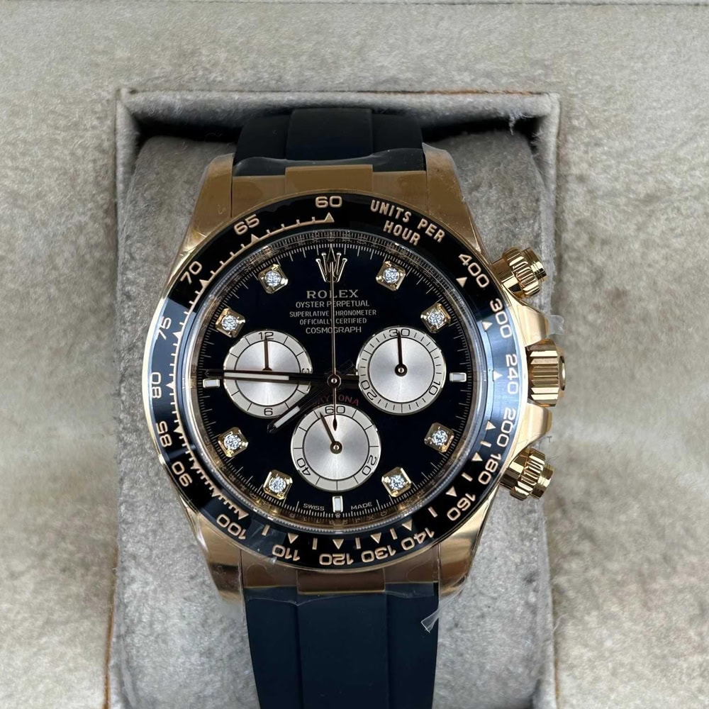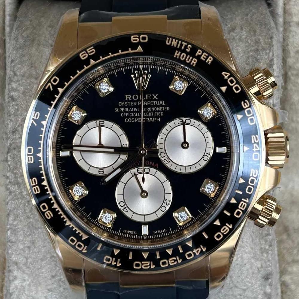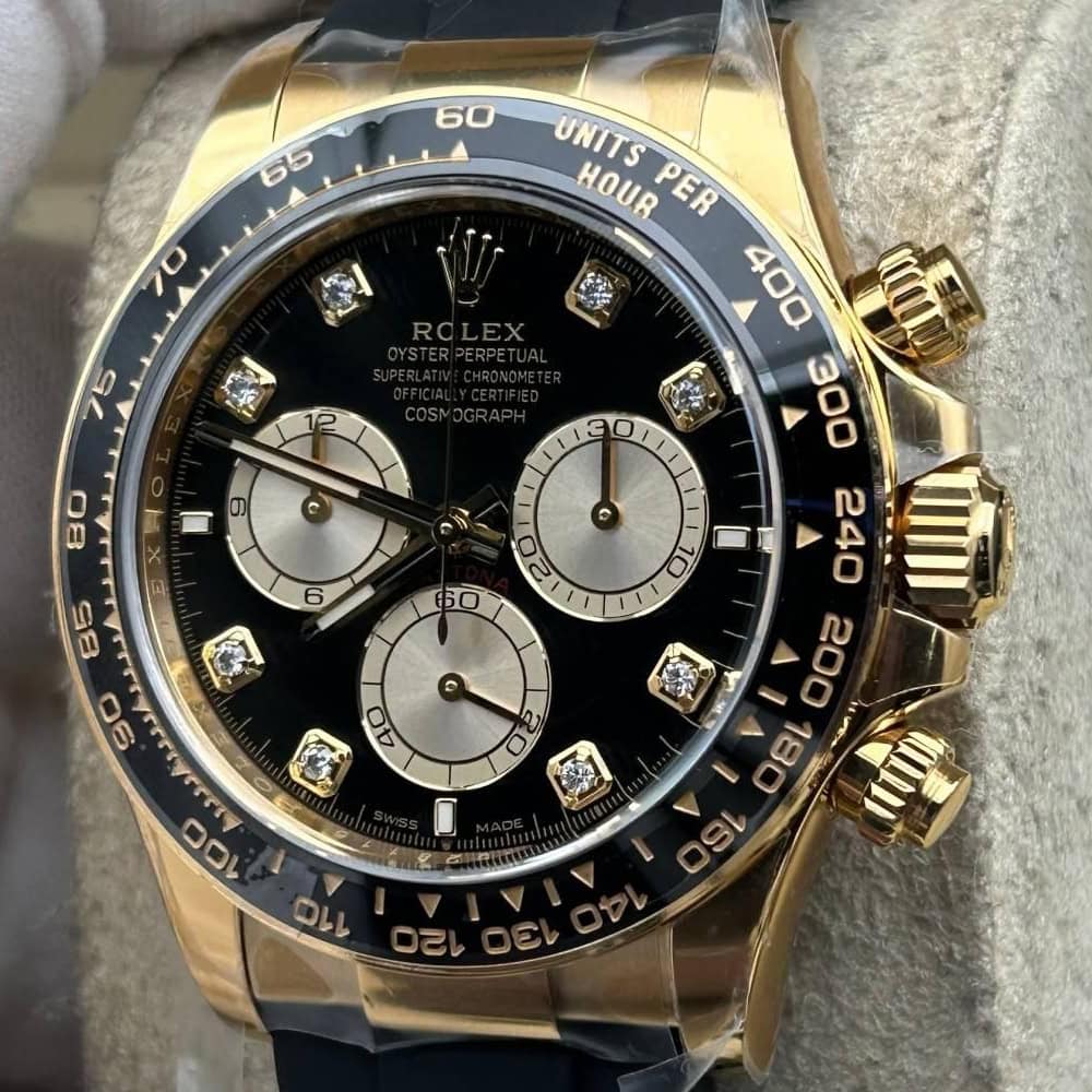 ケース:クリンファクトリーによるこのデイトナは本物18KイエローゴールドPVDコーティング加工された頑丈な904Lステンレススチールによって作りされております。40ミリのケースは完璧に正規品と一致しております。ケースは一体鍛造製法によって作り出されており、滑らかで洗練されたエッジが特徴です。頑丈なねじ込み式リューズはスイス製ラバー・シールと完璧に組み合わされております。RehautにはROLEXROLEXの刻印が刻まれており、あらゆる方面はロレックスデザインを一致しております。