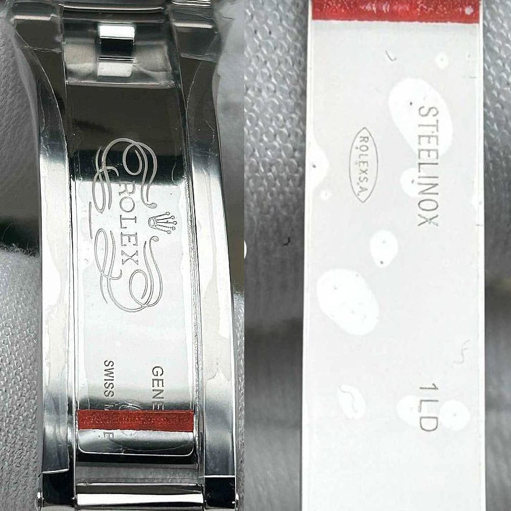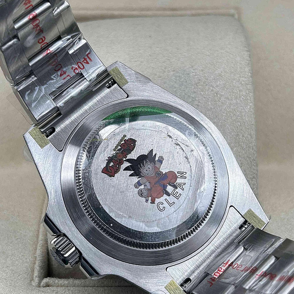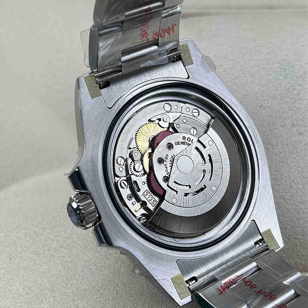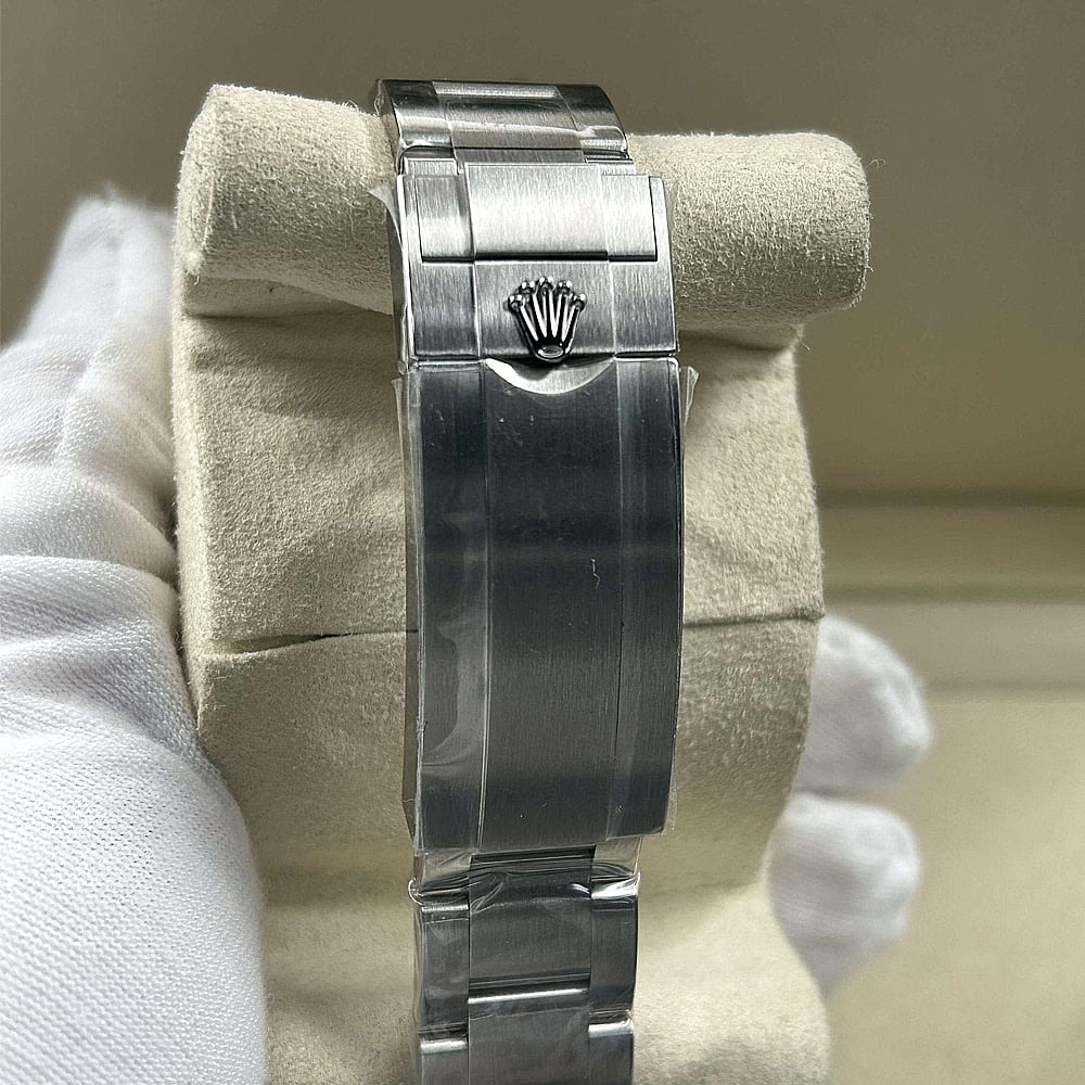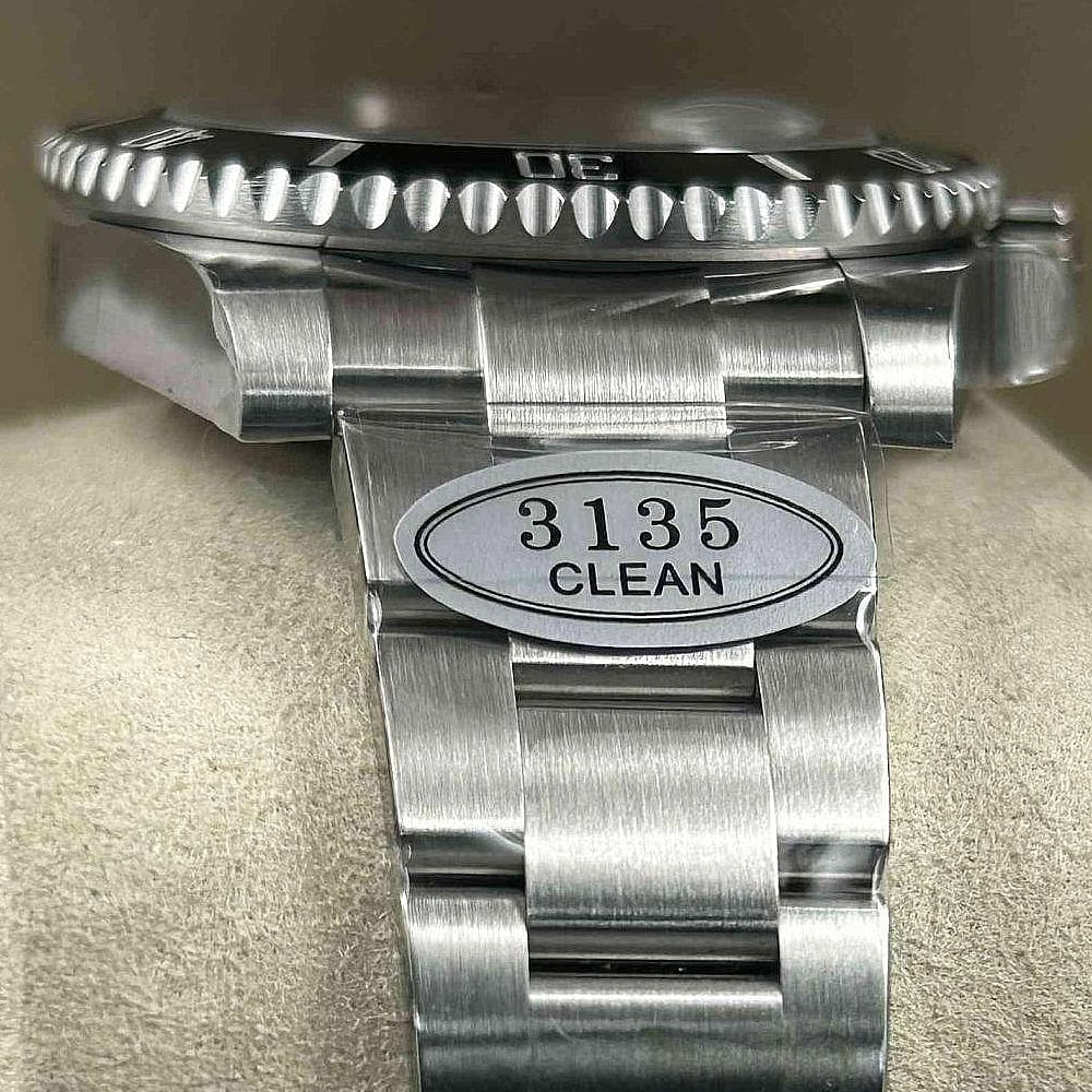ケース:クリーンファクトリーが製造した40mmの一体型904Lステンレス製モノブロックで、本物のロレックスステンレスに一致しています。20mmのラグスペーシング幅を備え、ねじり込み式のケースバックと巻き上げリューズも付属しています。内側のROLEXレーザー刻印が本物の証明となり、DLCスクラッチ防護コーティングで耐久性が確保されています。寸法と重量は本物のロレックス時計と100%同一で、パーツの交換がシームレスに可能です。