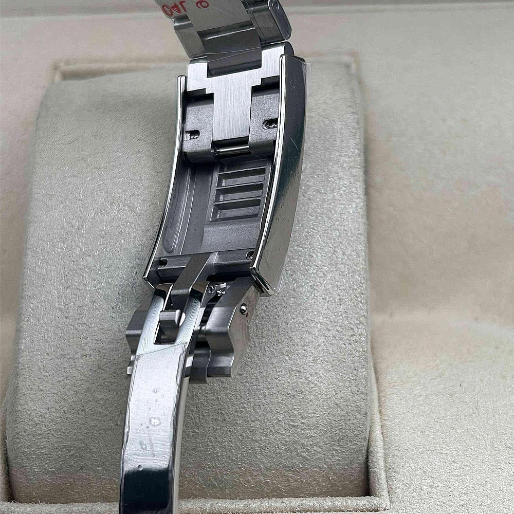 ブレスレットは堅牢な904Lステンレス鋼で設計され、DLCスクラッチ防護コーティングで耐久性が確保され、信頼性のあるオイスターロックセーフティクラスプとグライドロックダイバーズエクステンションシステムが組み合わされています。