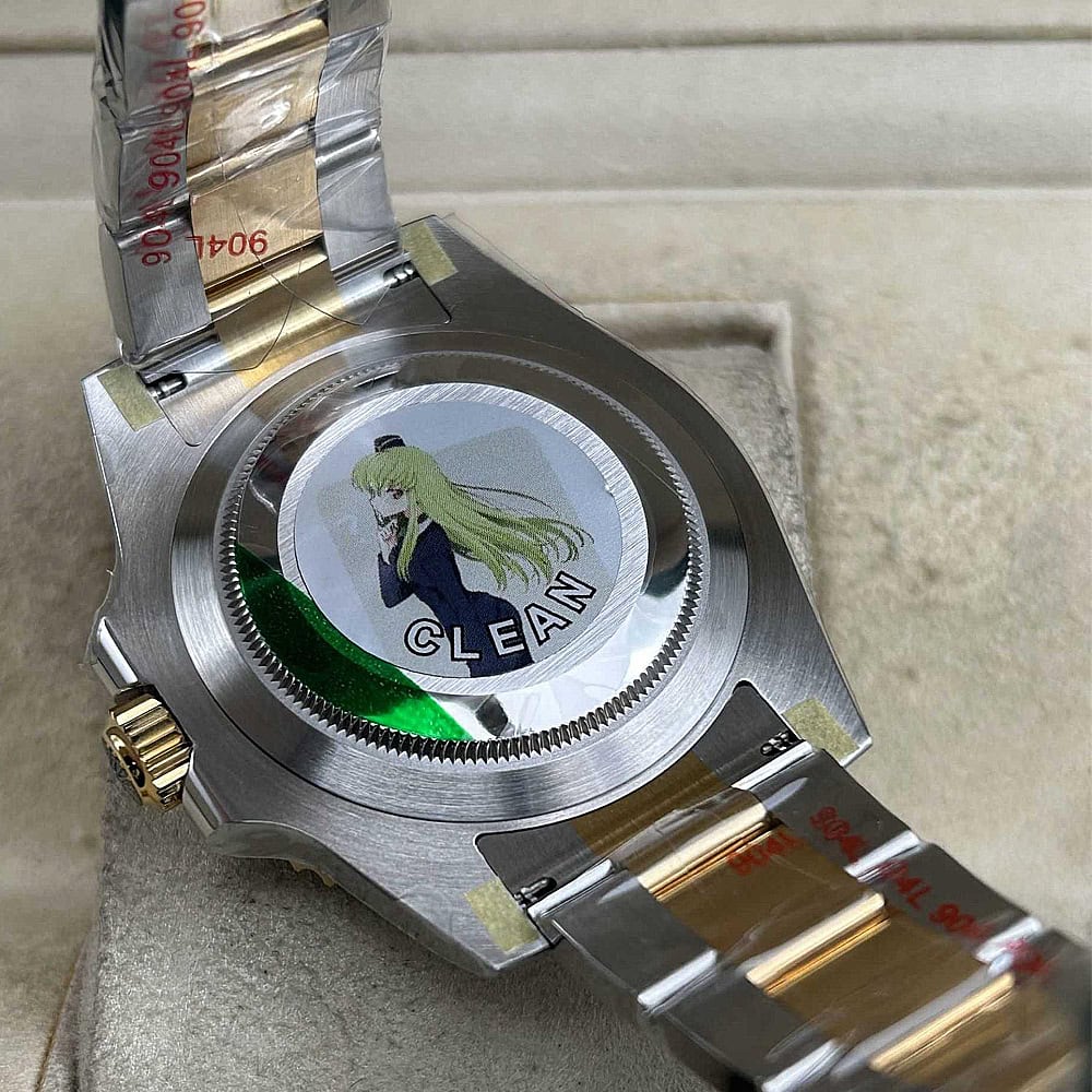 ケース:クリーンファクトリーにより、最高な伝統工芸を活用し、18kイエローゴールドコーティングを施された904Lステンレススチールケースを発表し、そのモノブロック構造は本物ロレックススチールとそっくりです。40ミリケースはスリームなラグを備えており、ラグ幅は20ミリで、正規品と一致しています。スクリュー式ケースバックと巻き上げリューズを備えており、RehautリンクにはROLEXROLEXレザー刻印があり、DLCスクラッチプロティングコーティングも施されております。寸法と重さも完璧に正規品と一致し、すべてのパーツはロレックス正規品との交換性を確保しています。