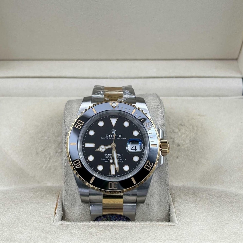 ベルト:フラートな3ピースリングを備えたオイスターデザインのブレスレットは正規品の20ミリケースラグと幅広のブレスレットにマッチします。18Kイエローゴールドコーティングされた904LステンレススチールにはDLCスクラッチプロティングコーティングが施されています。しっかりとしたネジ山、グライドロックダイバーズエクステンションシステムを含む折りたたみ式オイスターロック安全スクラップも備えています。