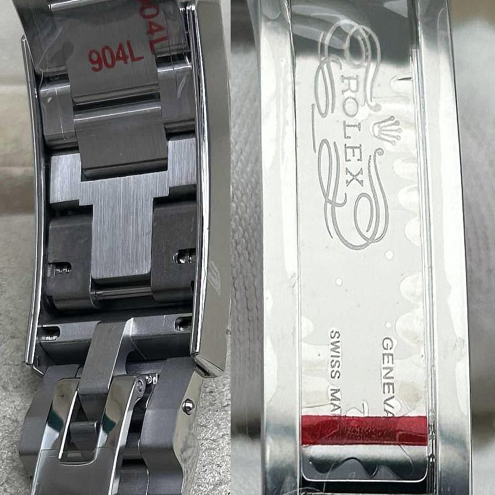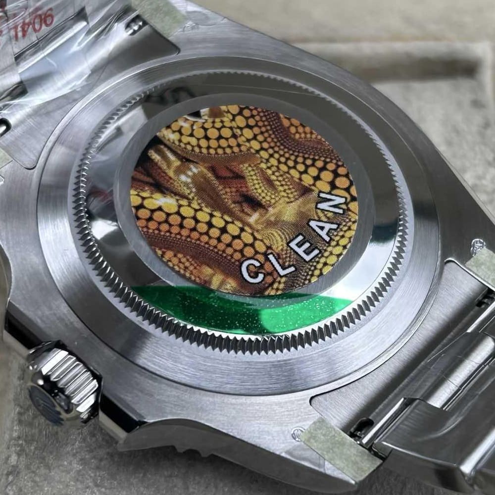 ケース:クリーンファクトリーサブマリーナは18Kホワイトゴールドコーティングされた頑丈な904Lステンレススチールで作り出された40ミリケースを備えており、本物ロレックス904Lスチールのモノブロック構造を再現しました。DLCスクラッチスチールコーティングされたねじ込み式ケースバックと巻き上げリューズを備えています。寸法と重さは完璧に正規品と一致しており、あらゆる部品は正規品との交換性を確保しています。