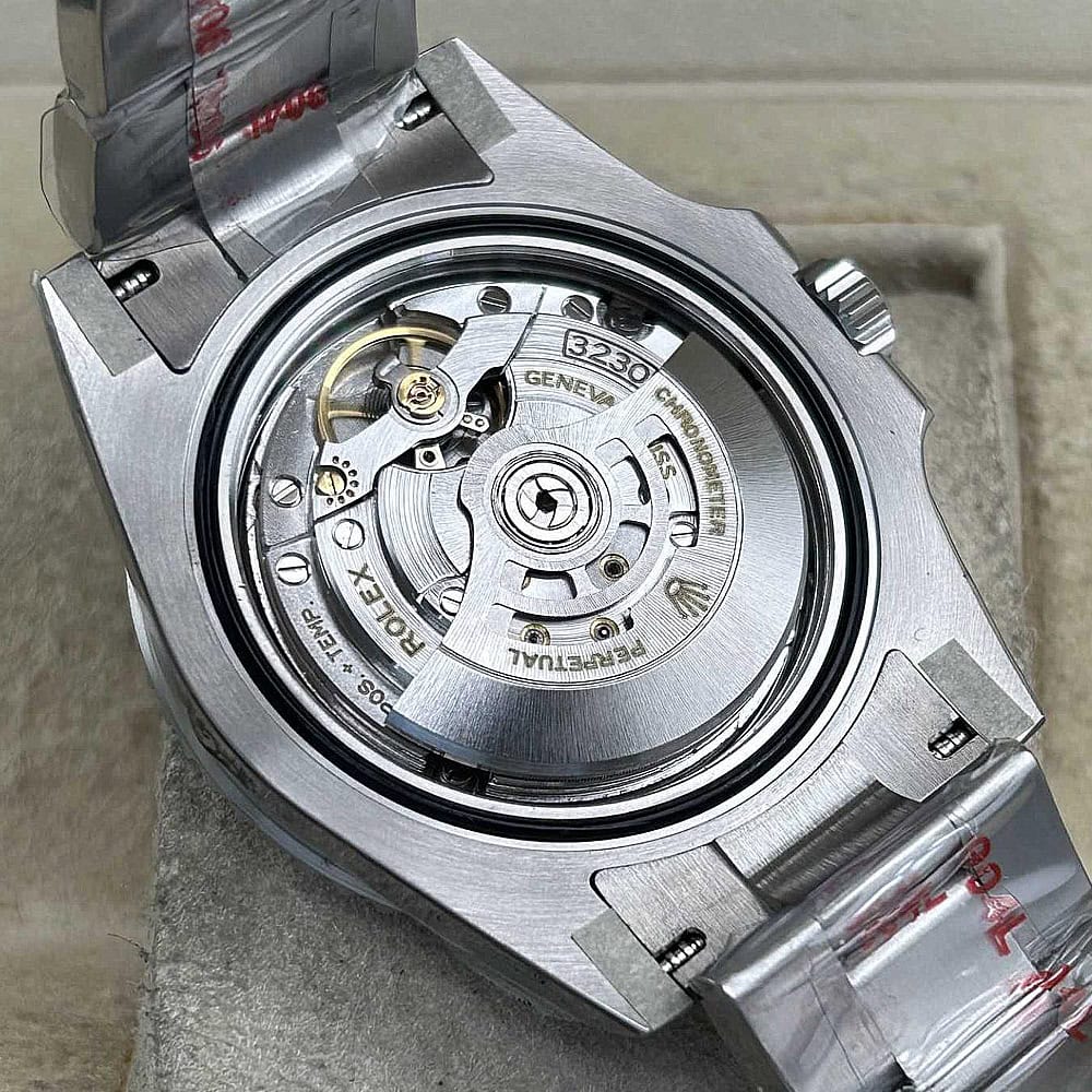 ムーブメント:このモデルは常磁性ブルー合金製パラクロム・ヒゲゼンマイと高性能パラフレックス・ショックアブソーバーを備えたスイス製ロレックス3230クローンムーブメントを搭載されております。ムーブメントには正しいシリアルナンバーと、オリジナルと見分けがつかないほど内外に同一のマーキングが施されています。ムーブメントすべての部品は正規品と交換性があります。パーペチュアルにより、オートマチック機械式両方向回転自動巻きを実現します。滑らかなスイープセコンド針は28,800 VPH (4Hz)で作動しています。精度はきちんとCOSC認定範囲(-4/+6秒/日)に抑えられており、パワーリザーブはほぼ70時間に達します。