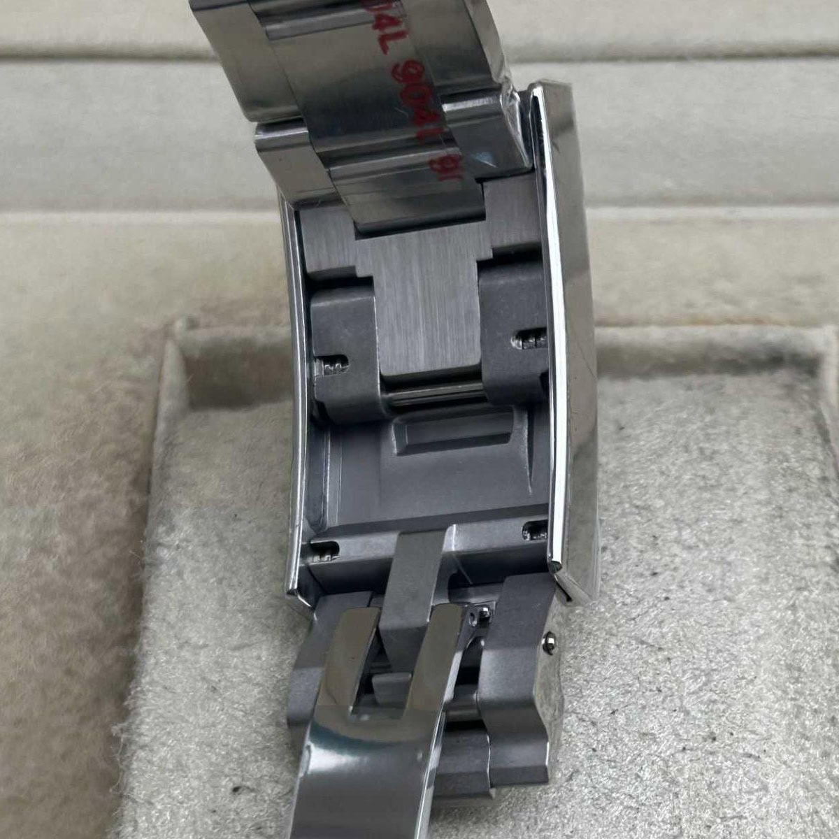 ベルト:クリーンファクトリーは頑丈な904Lステンレススチールを採用し、DLCスクラッチプロティンコーティングにより、耐久性を確保しています。頼もしいオイスターセーフティクラスプとグリデロック・ダイバーズ・エクステンション・システムも備えています。