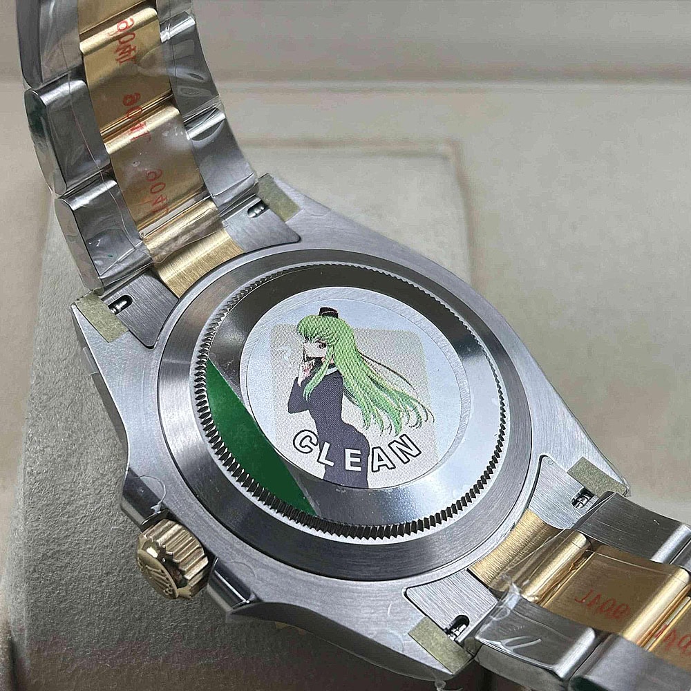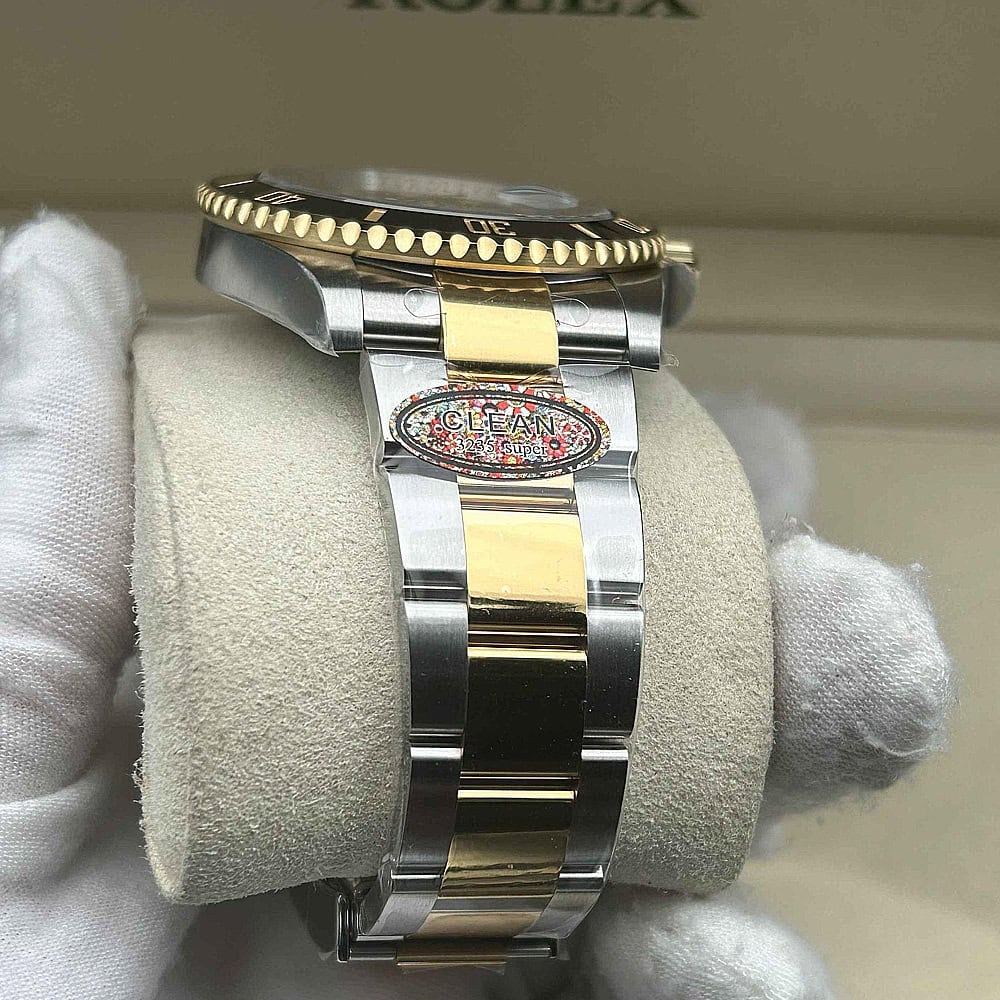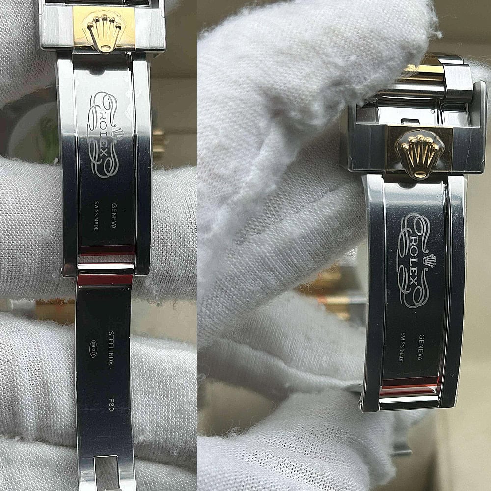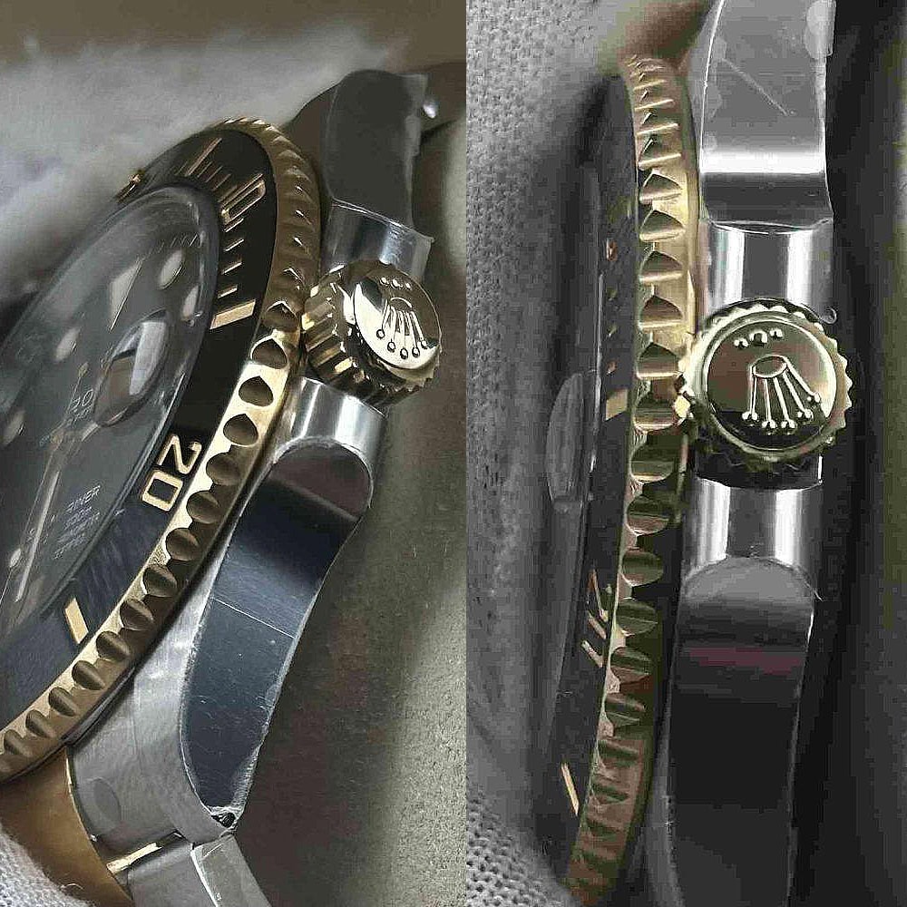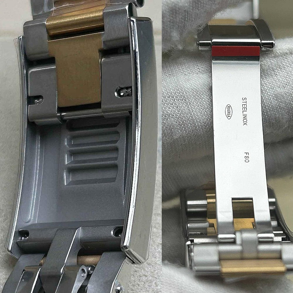 ケース:クリーンファクトリーにより、最高な伝統工芸を活用し、18kイエローゴールドコーティングを施された904Lステンレススチールケースを発表し、そのモノブロック構造は本物ロレックススチールとそっくりです。41ミリケースはスリームなラグを備えており、ラグ幅は21ミリで、正規品と一致しています。スクリュー式ケースバックと巻き上げリューズを備えており、RehautリンクにはROLEXROLEXレザー刻印があり、DLCスクラッチプロティングコーティングも施されております。寸法と重さも完璧に正規品と一致し、すべてのパーツはロレックス正規品との交換性を確保しています。